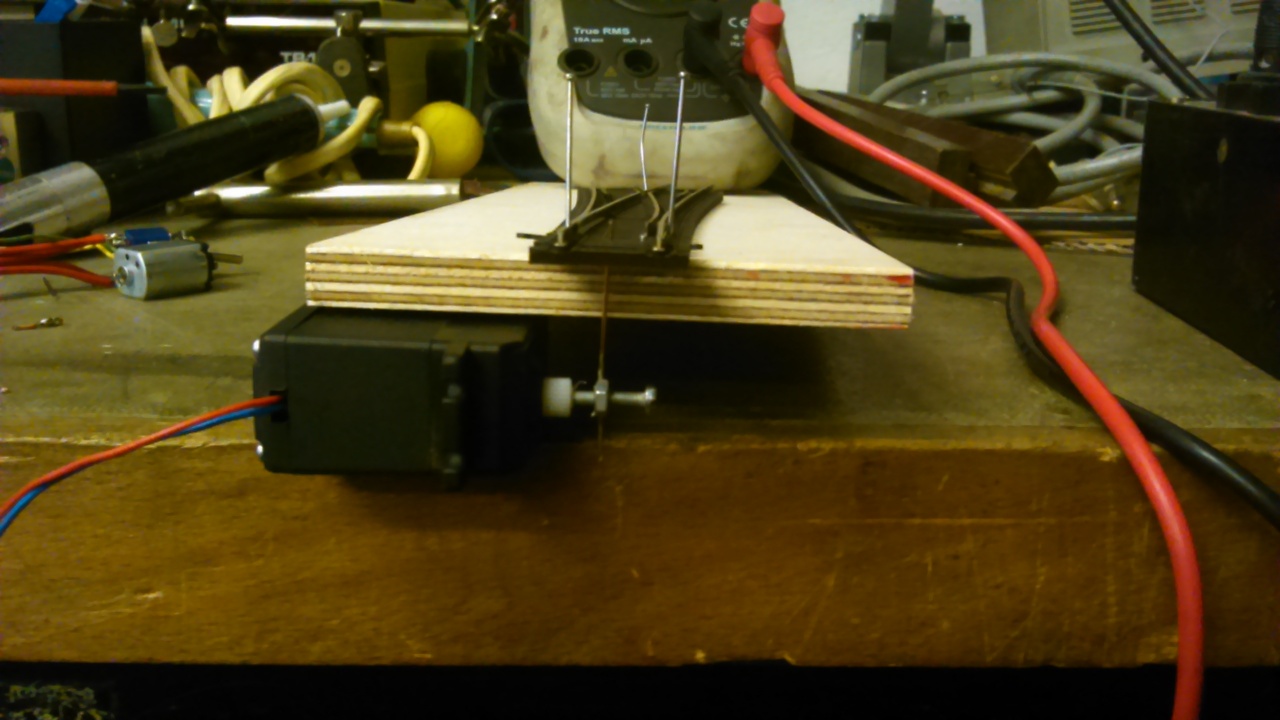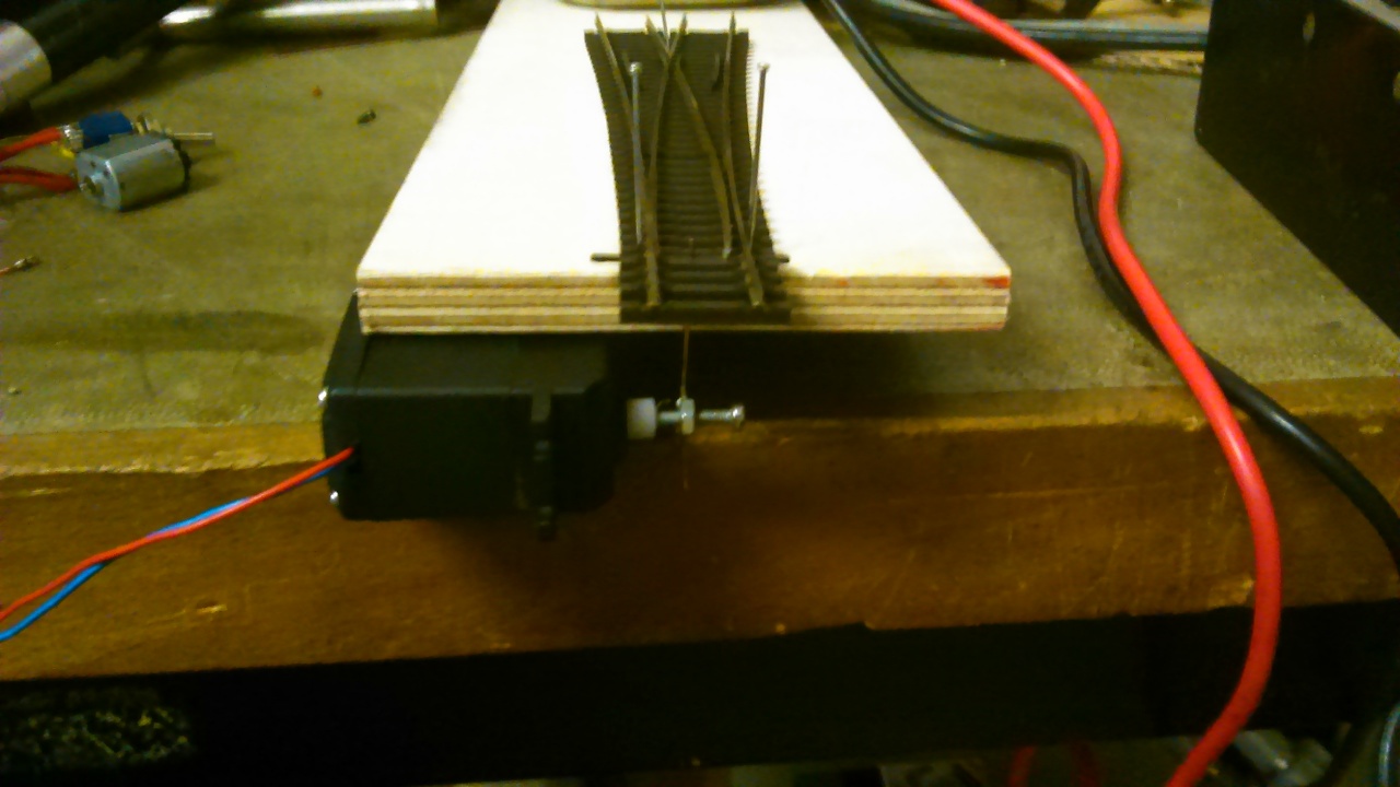 Jelen pillanatban ott tart SG90 servoval 1.2-1,5 voltal egy nehezen állítható váltót simán átnyom, a 1,5mm réz villanyvezeték U dróthurkot éppen görbítve a végén. A hosszabb rúd közepe vége van használva 100mA árammal, végállásban megszorulva kb 180-200mA. Ennyire korlátozza a táp meg a motor saját ellenállása.A végállásra meg azt találtam ki megy 2-3 s ig aztán nincs áram, átért átért ha nem már úgysem fog. Gondolkodom még a végállásokon, a polarizáció miatt egyébként jó lenne, de lehet hagyom és a váltási idő után/közben vált azt kész.