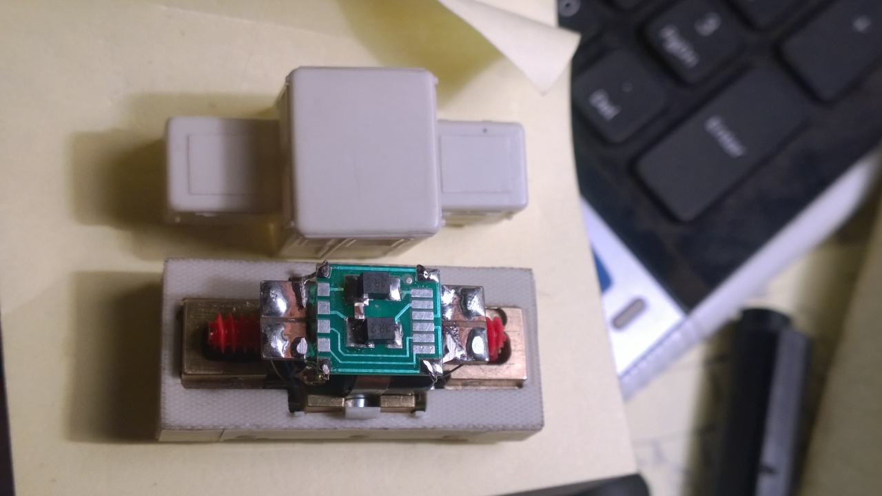 Ez csak kényszermegoldás volt, 0,2-0,3mm átmérőjű rugalmas anyagot tervezek majd érintkezőknek. |