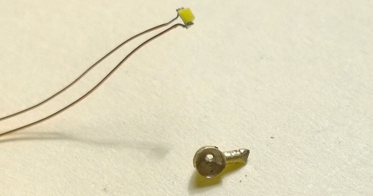 Elvileg elférne bennük egy kicsi 0603-mas Led, ki is lehetne fúrni őket 0,5-ös fúróval a vezetéknek,de megpróbálkozott-e már valaki ilyesmivel???