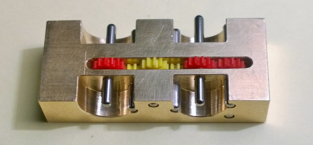 Ebbe én is beleakadtam anno. Azota a tengelytávolságokat a modul kb. 1/4-vel növelni szoktam. A finom moduloknál ez gyakran rémálom, mert igen pontosan kell dolgozni. Föleg ilyen esetben mint a tied, ahol sok fogaskerék kapcsolodik egymásba. Bármelyik furata megcsuszik akár egy kicsit is kezdheted elölröl az egészet. |