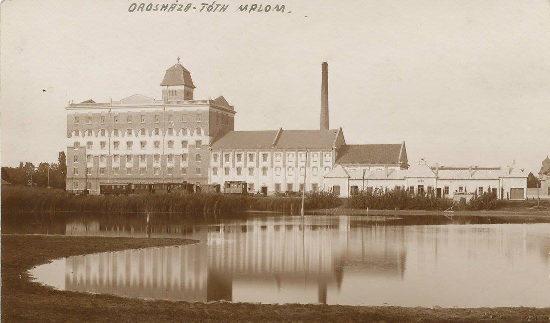 Orosháza MÁV AK állomást fogja megjeleníteni, háttérben a Tóth Malommal.