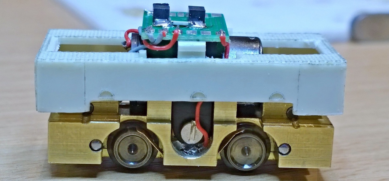 Itt az egyik utolso modellem, a tengelytáv kb azonos mint a C50-n ráadásul az elsö forgováz "nagyon látszik". Csak nagyon vékony alpakkadrottal tudtam megoldani az áramszedést. Oldalrol nem látni csak ebböl a szögböl. Ha lenne kedvem ezt is átépiteném és az alváz alá raknám az áramszedést. De ehhez uj alvázat kellene épitenem a jelenlegire nem lehet felszerelni. |