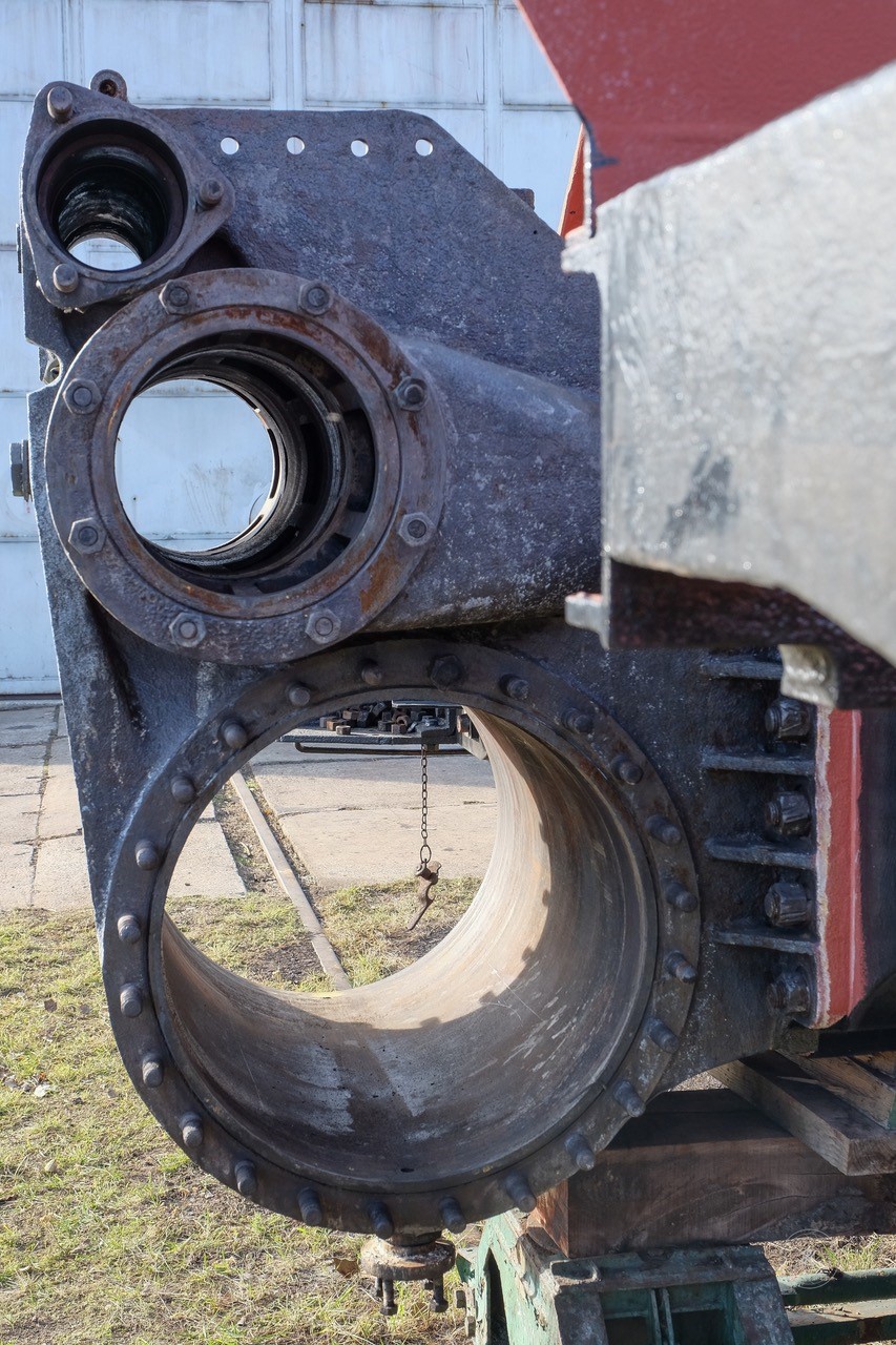 (Már csak zárojelben, hogy, hogy a daru gyártoja nem gondolt ilyesmire és nem biztositotta a daru gémjét automatikusan a vontatási üzemben? A régi daruk gémjét az ehhez tervezett kocsira kellett helyezni, ami automatikusan biztositotta vontatás közben az elfordulás ellen. Ez az aproság most eltünt a tervezök asztalárol és a gyarlo ember gondjára lett bizva.)