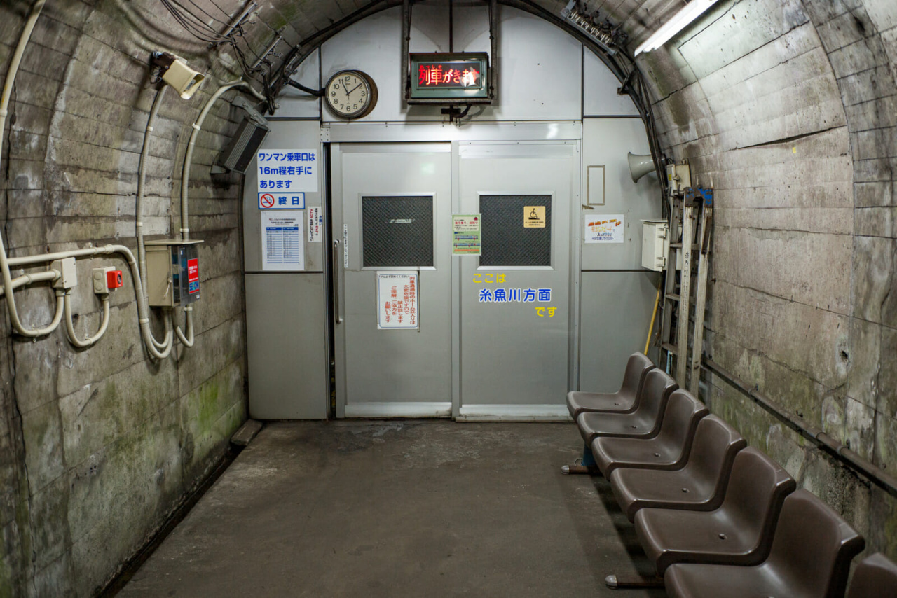 Az állomás két egymással szemben lévő oldalperonból áll, amelyek a 11353 méter hosszú Kubiki-alagút belsejében helyezkednek el, 40 méterrel a föld alatt, és 290 lépcsőn keresztül kapcsolódik a bejárati kapuhoz. Csak lépcsőház van, lift és mozgólépcső nélkül. Az elhaladó vonatok által keltett légnyomás miatt a peronra való bejutás korlátozott, a védett váróterem nehézfém ajtókkal védi az utasokat a tájfunszerű széltől.