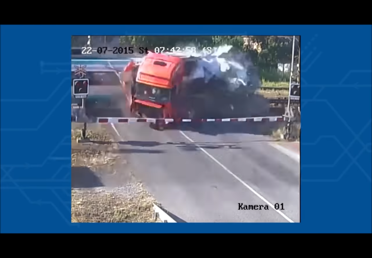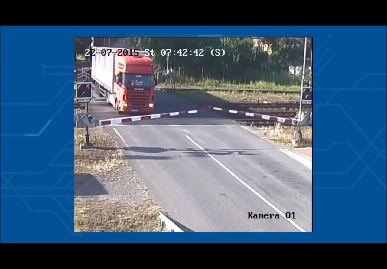 A kamionos viszont látta, hogy megy a villogo, ezért már az elsö sorompo elött megtorpant, de megis tovább hajtott egyre lassabban. Az elsö sorompo abban a pillanatban kezdett el mozdulni, amikor már elhagyta jelzöt és a kamion eleje már a sineken volt, és ujra megtorpant, mert a kijárati sorompo kb 2 másodperccel az elsö után kezdett el a kamion elött mozogni és állva maradt. ( a videon pontosan látni.) Az algorizmus a nagy forgalom miatt olyan, hogy a bejárati sorompo még nincs teljesen lezárva amikor már idul a kijárati, és egyszerre müködik az ut két oldalán levö sorompo. Egyszerüen nincs idö arra, hogy elöbb a jobboldali kar zárodjon, majd utánna a bal oldali a vasuti pálya mindkét oldalán. A videoban pontosan látni, hogy a kamion