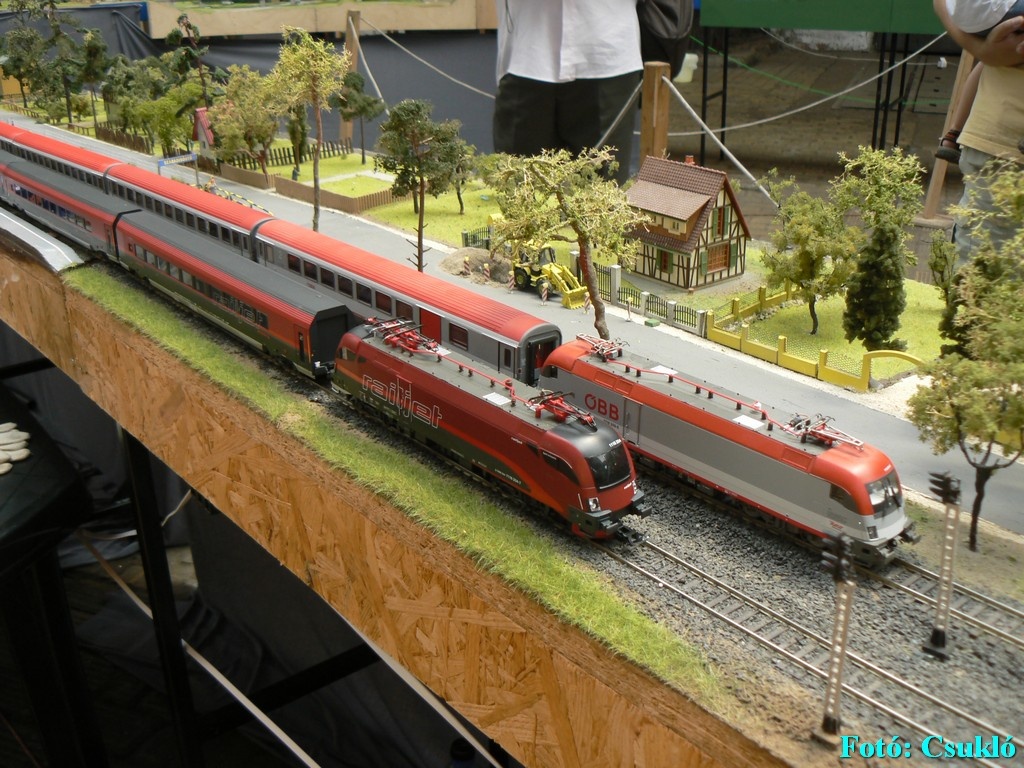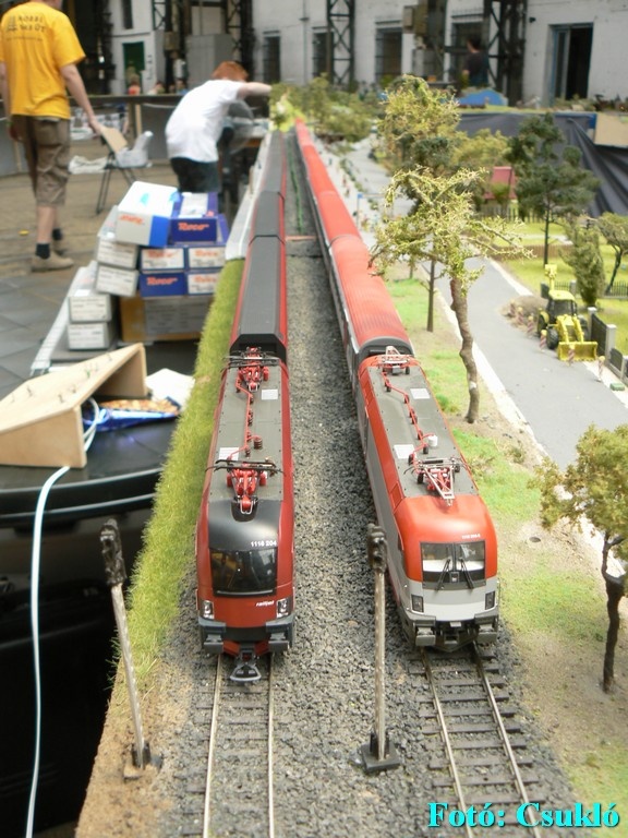 Bocsi nem is figyeltem hogy te vagy az ott hátul, de senki mást nem ismertem fel mert még kb egy hónapja vagyok az oldalon és nem tudom hogy ki kicsoda. Ja és még azért tizenéves vagyok és nem jó a memóriám.  Azért kedvesek voltak hogy hogy sok asztalon (a nagyobbakon) videózás közben lelassították. Ám sajna balszerencsémre mindig amikor videóztam mindig szétesett a csatlakozó a vagon és a mozdony között vagy megakadt a sínen.  Így kb a 10 rövid videóból 3-mat töröltem és 4-ben van valami ilyen baki és a maradékban meg jó lett  . De nem volt kedvem újravideózni. |