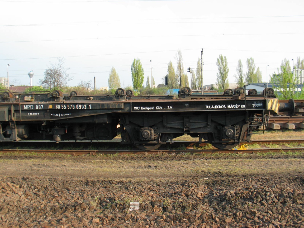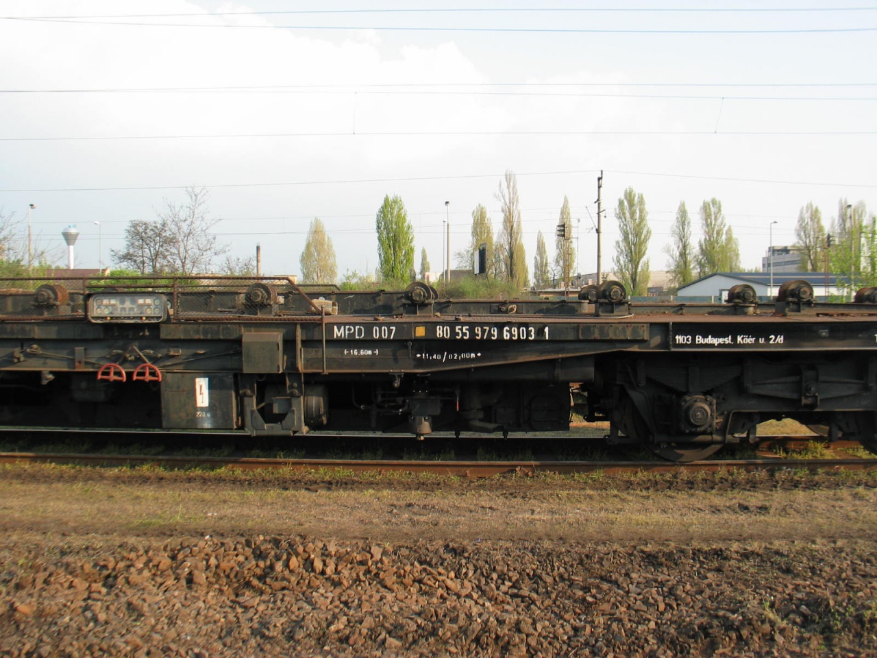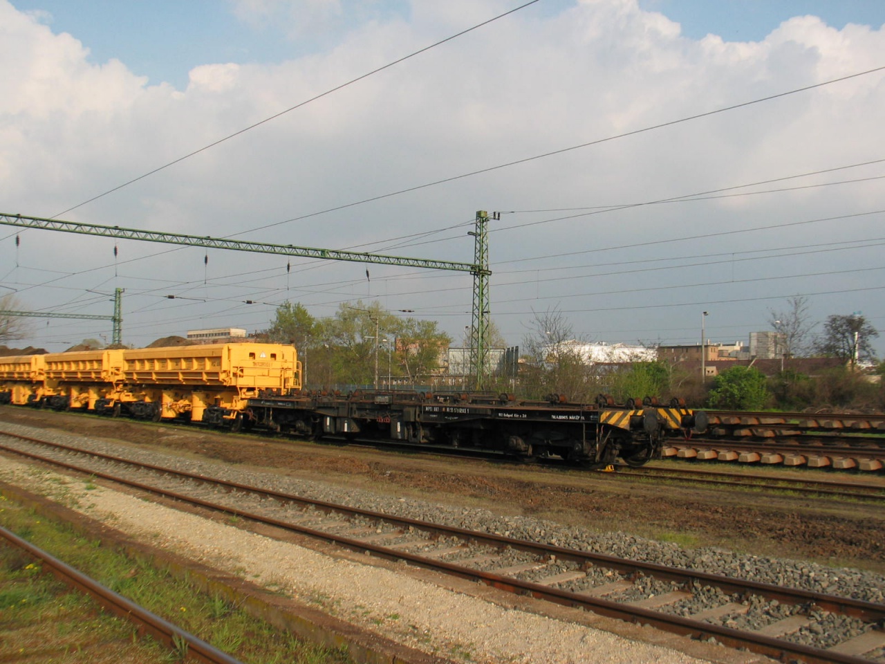 Az az önmozgo kocsit sima pörekocsi volt, ami jol láthato volt az a tipikus sárga hosszkeret \___/ a teteje ( hidrol láttam ) tipikus sima trapézlemez, szerintem sinszállito kocsi. ( abszolut semmi nem volt a platon a 3 emberen kivül. Az alvázak néztek nagyobbnak ki mint a 2 tengelyes kocsikon, innen gondolom, hogy 3 tengelyes. Sajnos olyan helyen vannak, hogy nem lehet hozzáférni, csak egy hidrol kb 200 m-l lehet látni. |