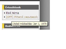 Most vettem észre, hogy az értesítőben az utolsó hozzászólás ideje rosszul jelenik meg. Mindegyik témánál ugyanez a dátum.  |