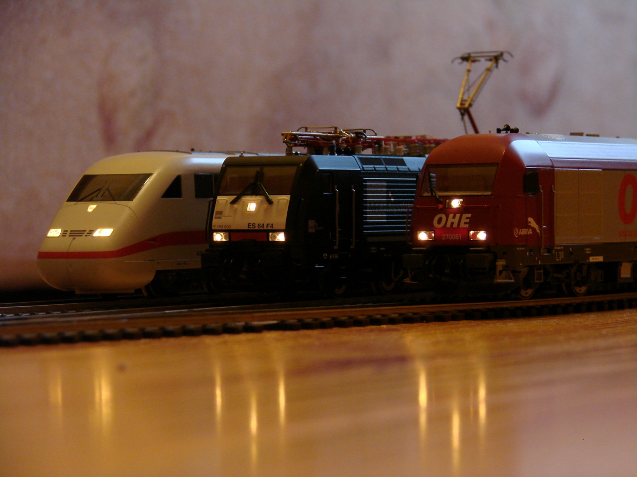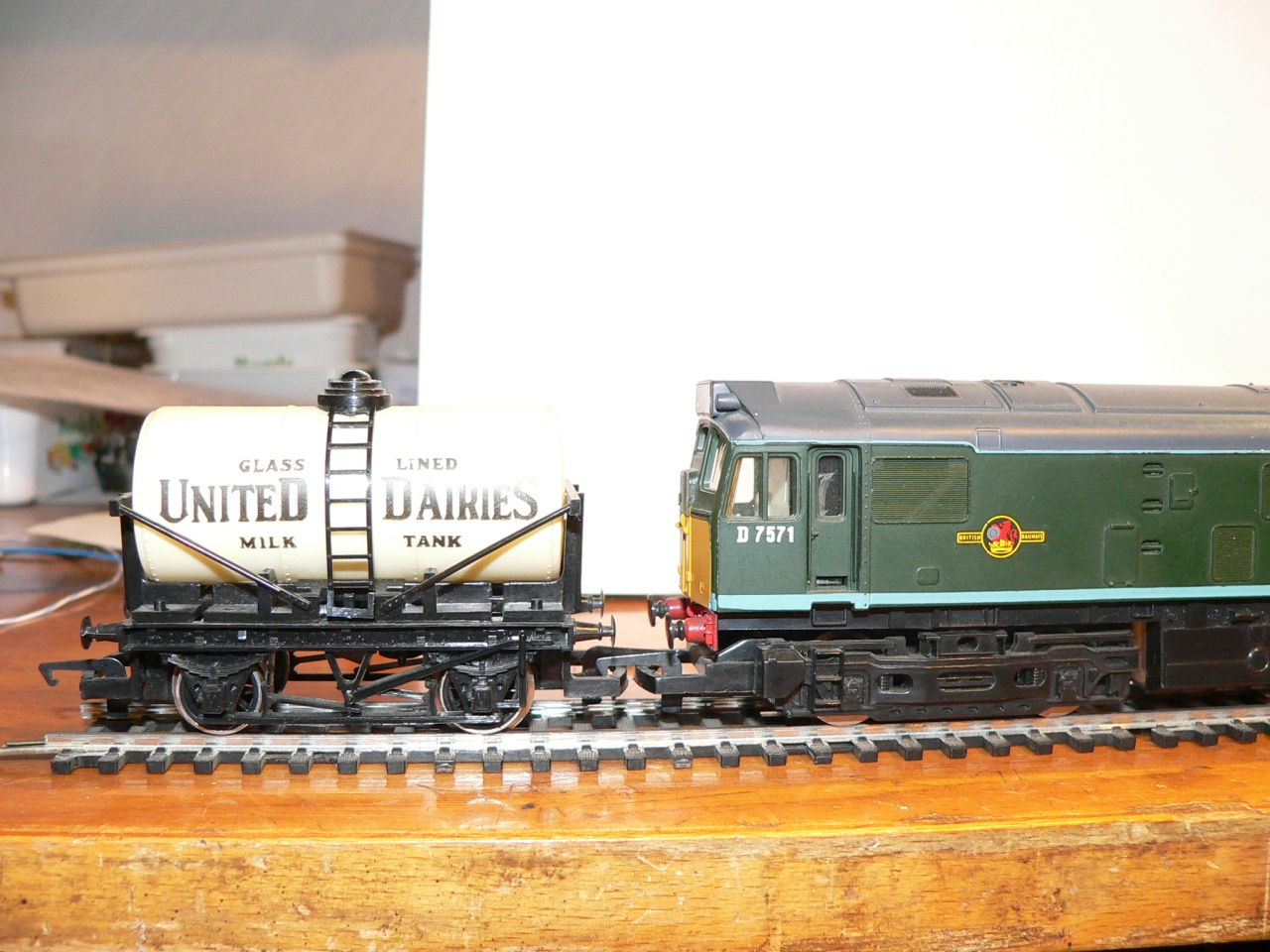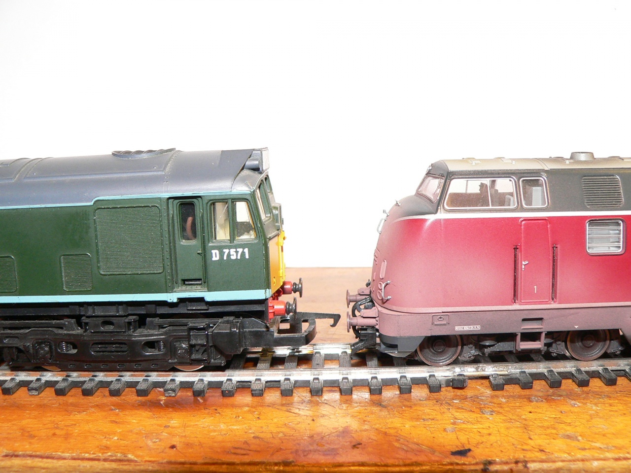 A gyüjtemény PIKO, ROCO, Liliput, Brawa, de örököltem egy Hornby Diesel gépet + 6 db teherkocsit is. Sajnos a Hornby modellek valamely korábbi években készültek, minimum 10 évesek, és emiatt a Fleischmann-hoz hasonló vonókapoccsal rendelkeznek, de ez még nem lenne a fő probléma, de a Hornby ezen szériájában az ütközők sokkal magasabban vannak mint az általam ismert Roco, Piko stb. Talán az lehet az oka, hogy e szériánál, vagy ez időben a Hornby nem 1:87 aránnyal számolta a kerékátmérőt, így minden magasabban van.