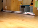 Új szerzeményeink. Most már teljes az ICE az új áramszedőkkel, dupla dekóderrel, bár még 1-2 kocsi lehetne, de egyellőre beérem ennyivel.  Nagyon megtetszett ez a teleszkópos vagon, gondoltam megveszem.  Hogy ne legyen teljesen sík a bútorlap, összeragasztgattuk az állomásépületeket.  |