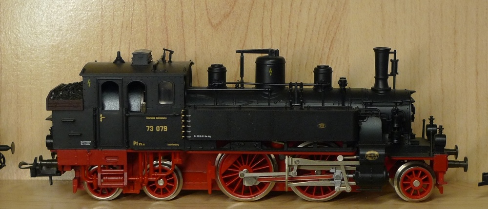 Rendes házifeladatot adtál! Pár darab képet találtam, aminél a DRG mozdonyon van "villám" jel. De ezek között is nagy a szórás, mert létezik olyan elrendezésben mint a te gépeden, de találtam nagy villámost is, ami felfelé vagy lefelé mutat, a védházra és gőzdómra volt festve, de olyan fotóra is bukkantam ahol csak a füstszekrény ajtóra volt festve. Pont a DRG BR73 079-ről van egy olyan fotó, ahol a védházon a szénputtonynál van egy nagyméretű felfelé mutató villám. A kép a vezérállás felőli oldalon készült, és a modelleden lennie kéne ott egy kis harangnak. |