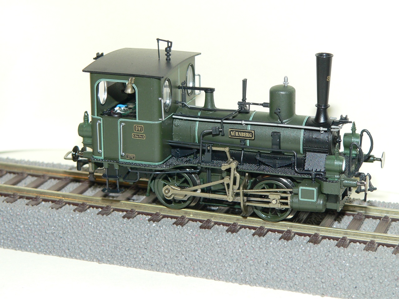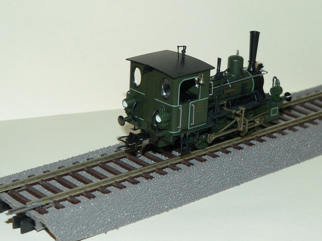 A kis mozdony fémből készült, alíg van rajta műanyag. A szabadon álló vezetékek, foggantyúk, csövek és az aprócska harang a vezérállásnál az indulás jelzésére, igen aprólékos kidolgozást mutat. A lámpái világítanak. |