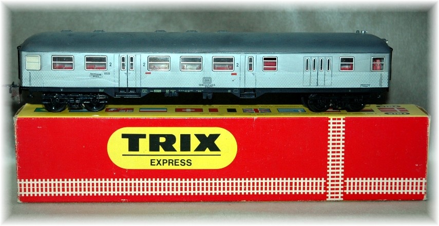 Trix-Express Silberlinge vezérlőkocsi, belső világítással és homlokvilágítással. Eredeti tulajdonosa már kétsínesre átépítve kapta az NSZK -s rokonától 1967 -ben. |
