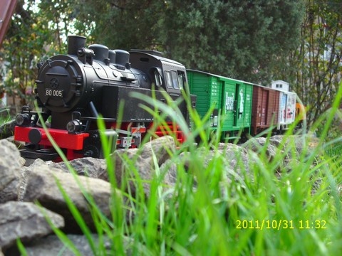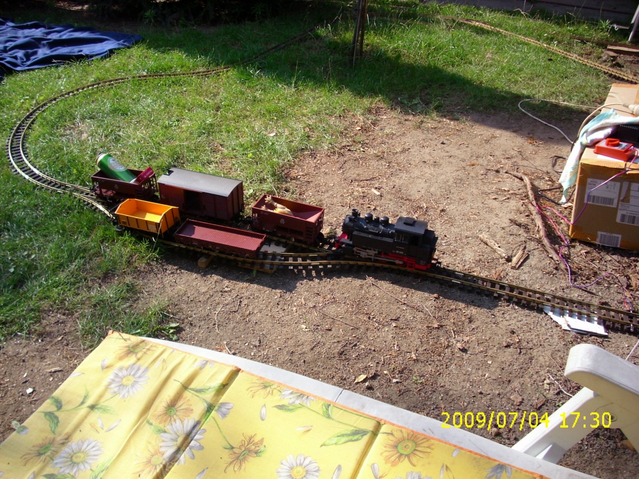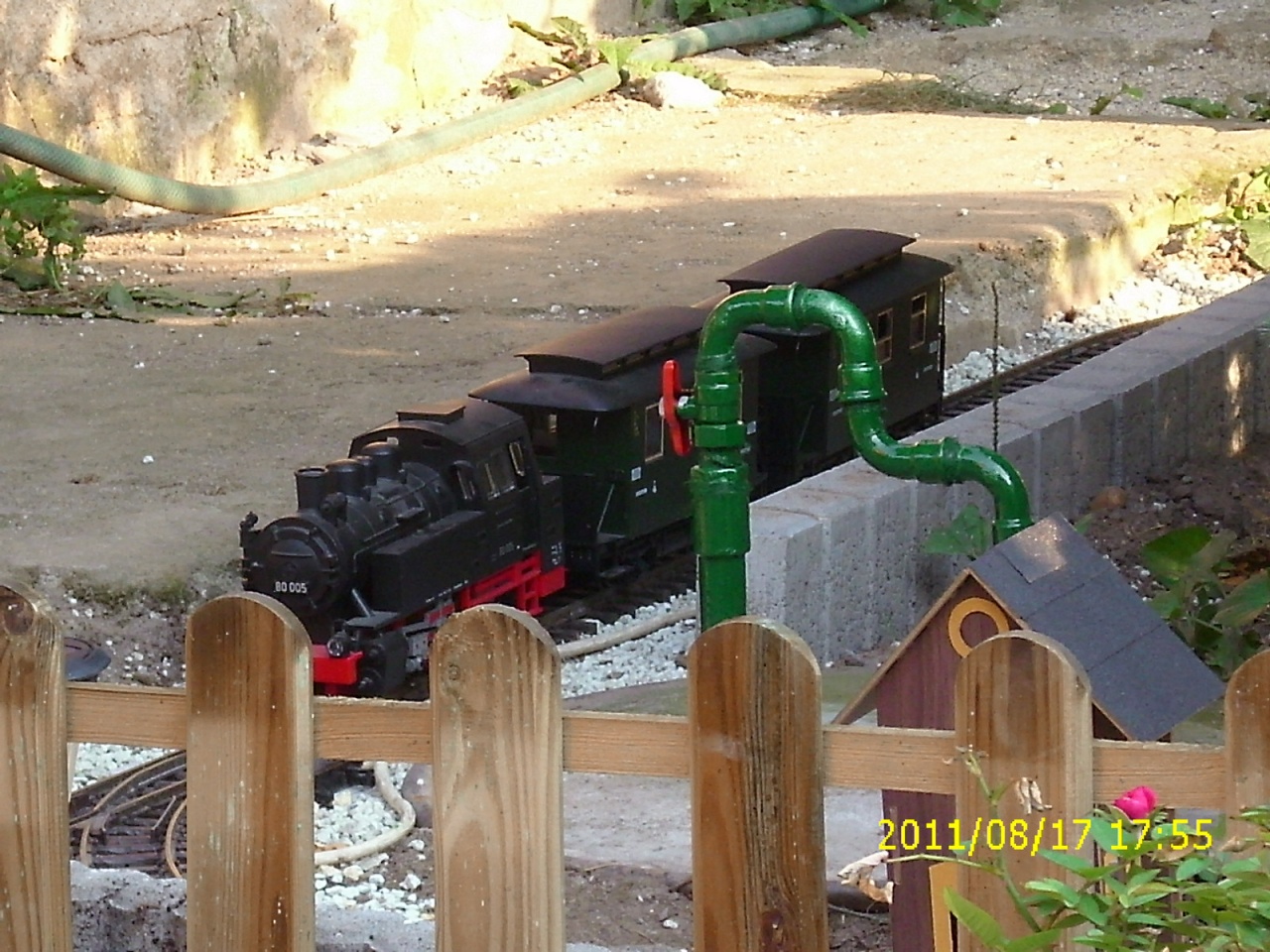 (Mondjuk, a Füstiben lévő kerti vasút nem semmi, nem két fillér lehetett kiépíteni, nagyon tetszik. Ha egyszer nagyon (de piszkosul!) gazdag leszek, amire - valljuk meg, nem sok esély látszik - akkor én is szívesen építenék egyet itthon, bár a lejtviszonyok nem éppen kedvezőek.  ) |