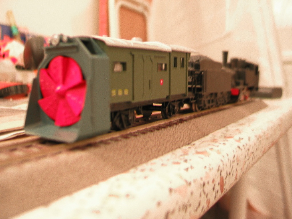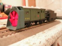 Egy észrevétel: a hátsó forgóvázat vigyed hátrébb, akár forgóváz cserét is végezhetnél a Märklin gép alapján, mert nagyon instabilnak tűnik a hómaród (talán az alul kikandikáló hamuláda miatt) |