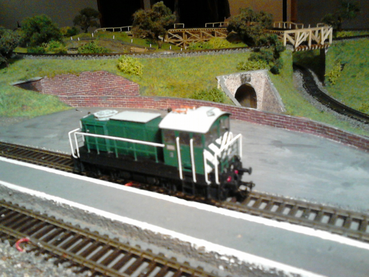 Ez utóbbiból akadt olyan is, ami egész modultalálkozón folyamatosan vonszolta a vonatait, mégsem esett szét. Ráadásul ezeknél a vonóerő a kasztni-kapcsoló találkozásánál lép ki, nem pedig a forgóvázból, ami alapján, ha valóban rosszul ragasztható lenne a kártya, akkor igen hamar levált volna a mozdony orra. De ez nem történt meg, így az anyagválasztás - ami egyedül Feri érdeme - jónak mondható. |
