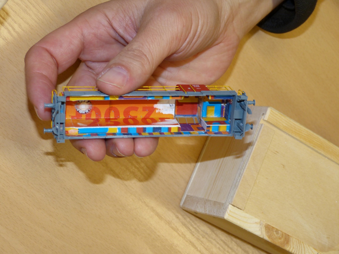 A REKO és az Y-os kocsik egyen festést kaptak, igaz csak a tetők lettek festve, de így szerintem jobban mutatnak majd egy szerelvénybe mint ha mindegyiknek különböző színű tetővel lett volna. |