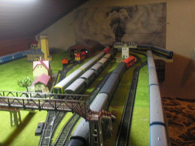 Az első terepasztalom egy igazi "asztal" volt. Először egy Märklin, háromsínes rendszerű "idiótakörös" volt, két kitérővel, egy megelőző vágánnyal. Ezt viszonylag hamar kinőttem, így jött az első, komolyabb pálya, egy (akkor még nagy számnak számító) PIKO TT pálya. Sokáig megvolt, többször átépítettem, igaz, akkoriban nem voltak még ilyen igényesek és drágák a modellezési anyagok. Egy idő után a "forgalmi technológia" (tulajdonképpen ez is egy zárt kör volt, és egy kiágazás ebből) kissé unalmassá vált, így a következő "fejlesztés" egy fal körül körbefutó, "C" alakú pálya volt, egészen "komoly" biztosító berendezéssel (persze az akkori kor színvonalának megfelelően, a '80-as évek végén). Egy költözés miatt akkor az egész dobozba került, majd ismét költözés. Most hely és mód lenne az újraépítésre, csak hát az átkozott pénz... Így most dobozokban pihen az egész cucc.  |