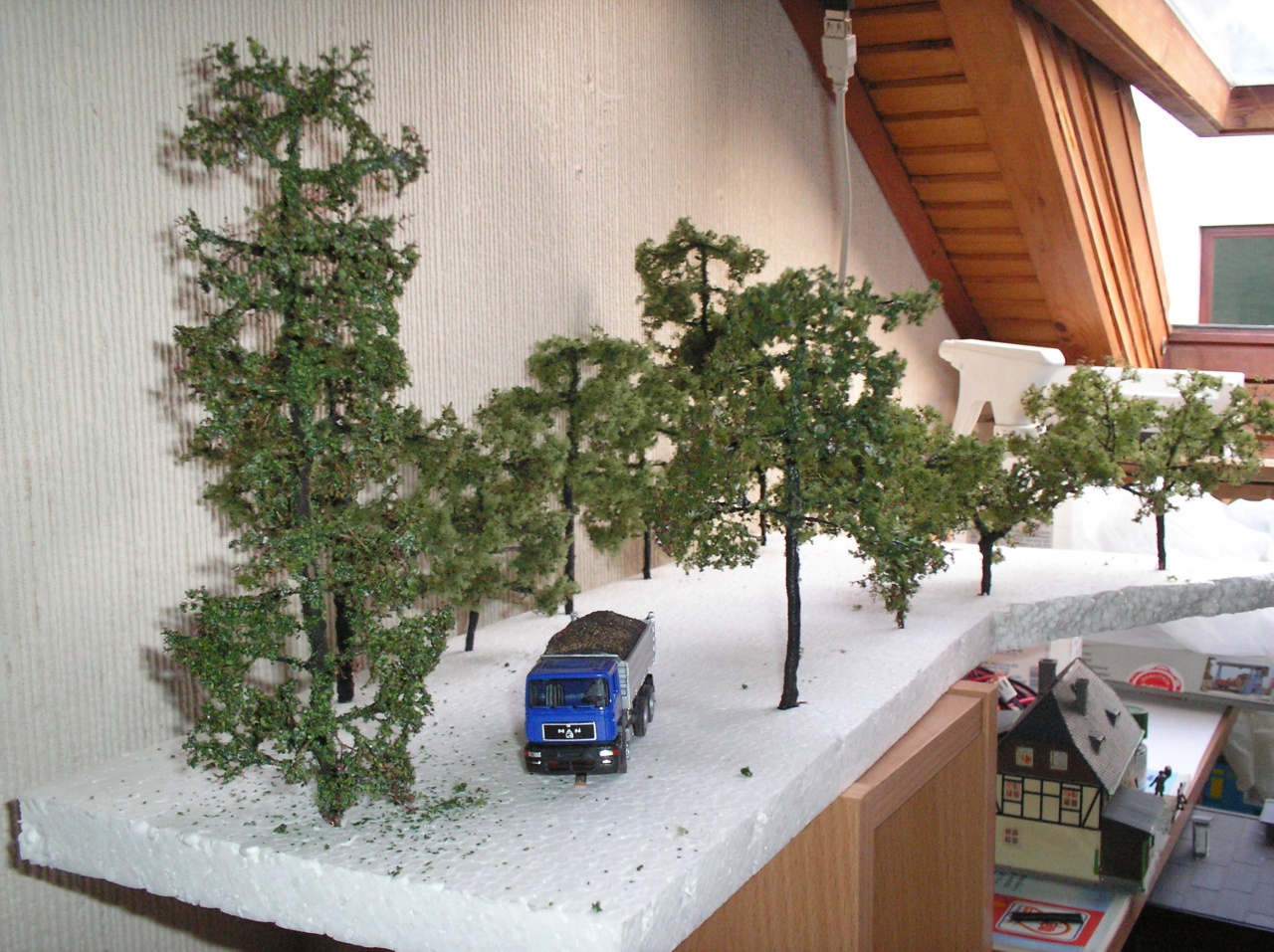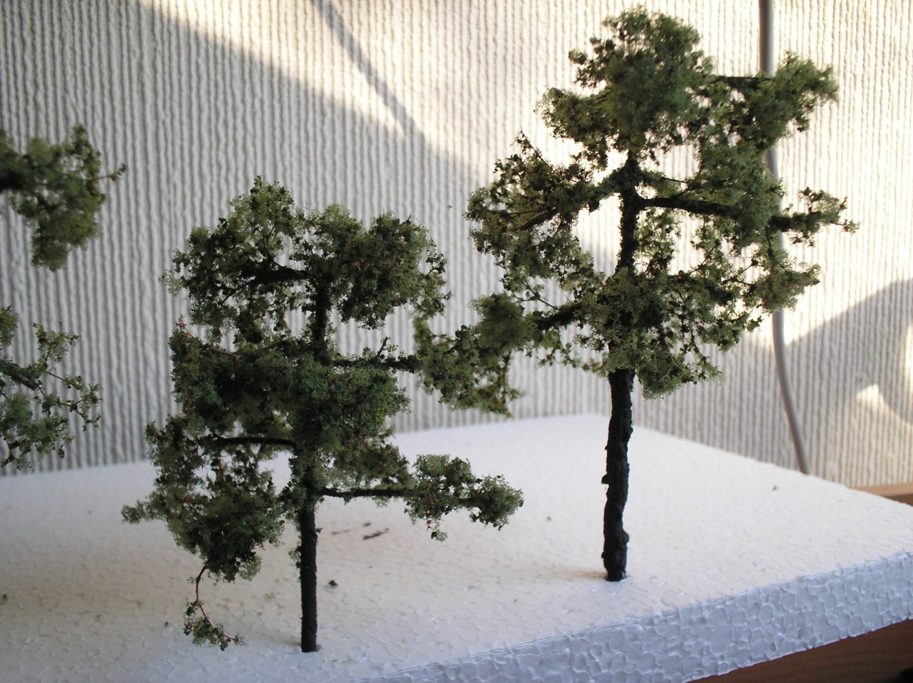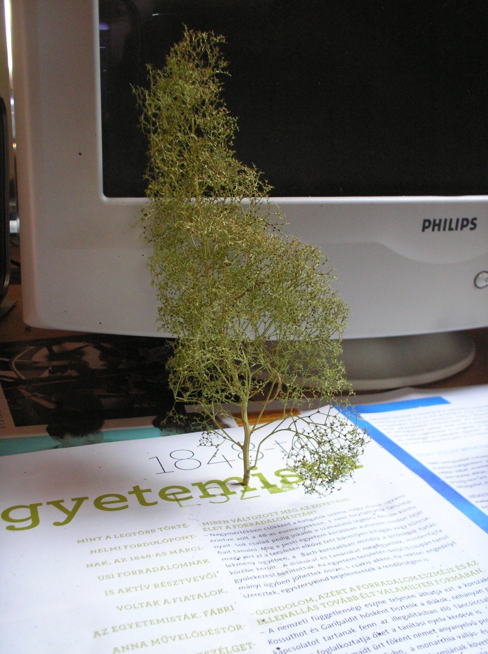 Anno valóban elég "egyhangúak" voltak a fák, és nem is túl természetesek, de ma már e téren is hatalmasat fejlődött a modellezőket kiszolgáló ipar. Sajnos, a fejlődés miatt az árak is ugrásszerűen megnőttek, ezért a kispénzű modellezők még ma is sokszor nyúlnak vissza a "gyökerekhez" (képletesen és szó szerint egyaránt).  |