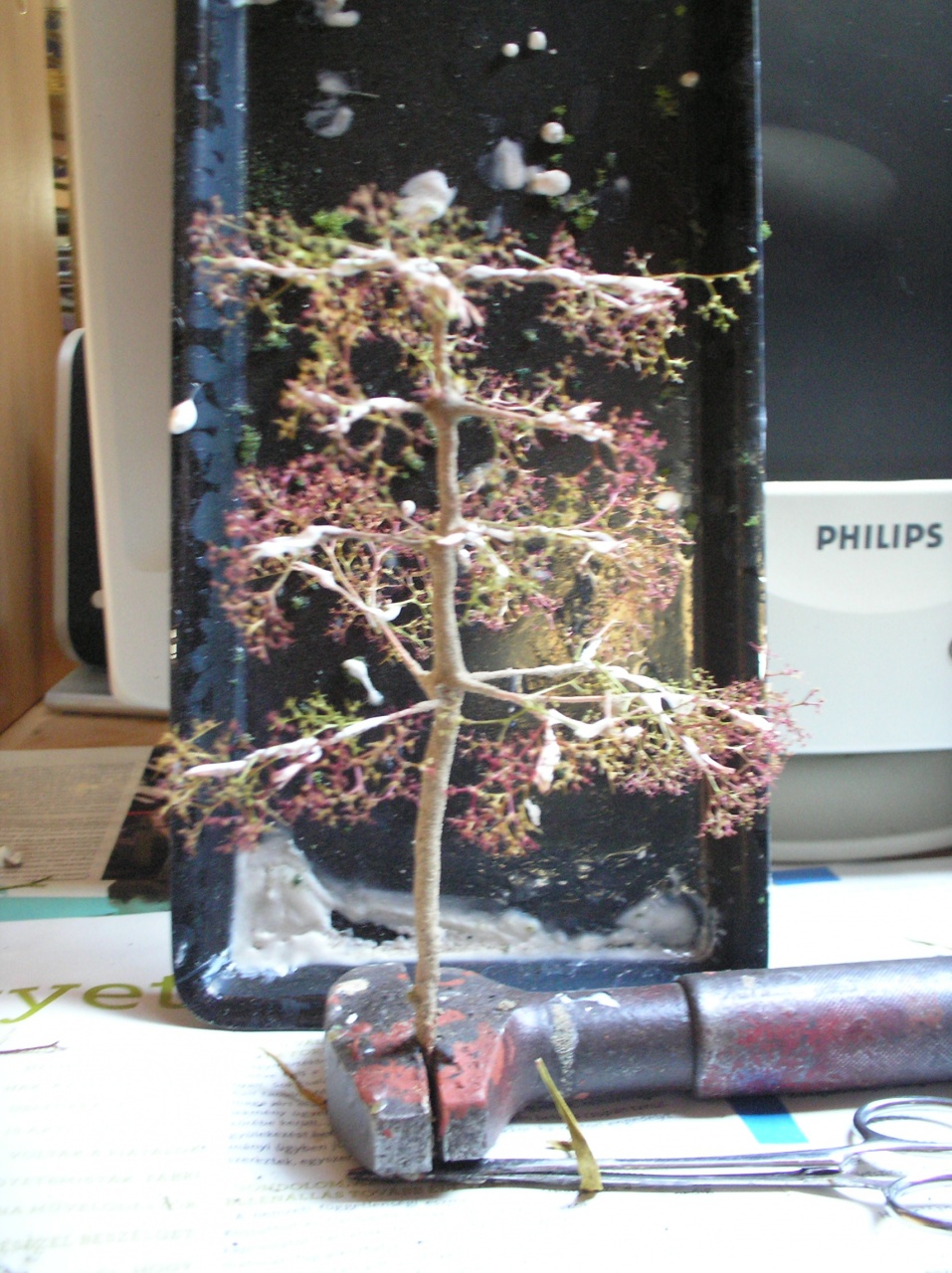 Én villany vezetékből hajtom ki a fáim, és az ágakat szárított gazzal imitálom, majd ezt ragasztózóm, és erre megy a lomb.. pár képet teszek fel róla, de majd lesz róla később videó is!