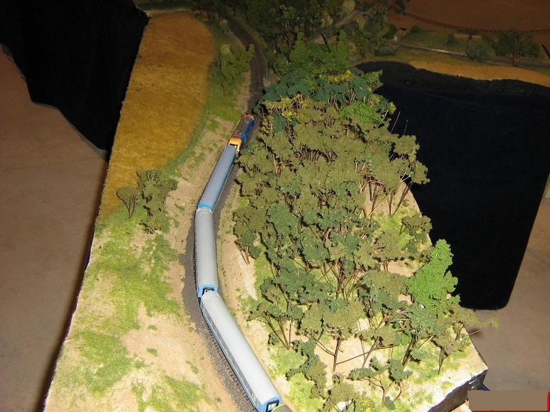 Néztem a fotótárban a terepasztalos képeidet és azt szeretném neked javasolni, ha annyira kiviszed a pályát az asztal széléhez akkor mindenféleképpen tegyél később oda plexi lapot, nehogy egy gyorsabb menetben kiegyenesítse a mozdony a kanyart.