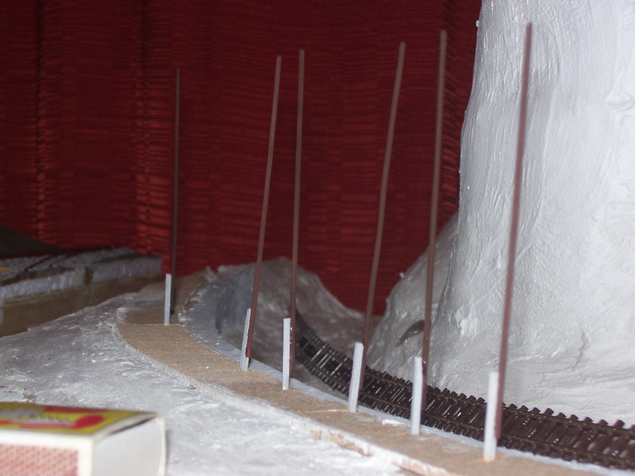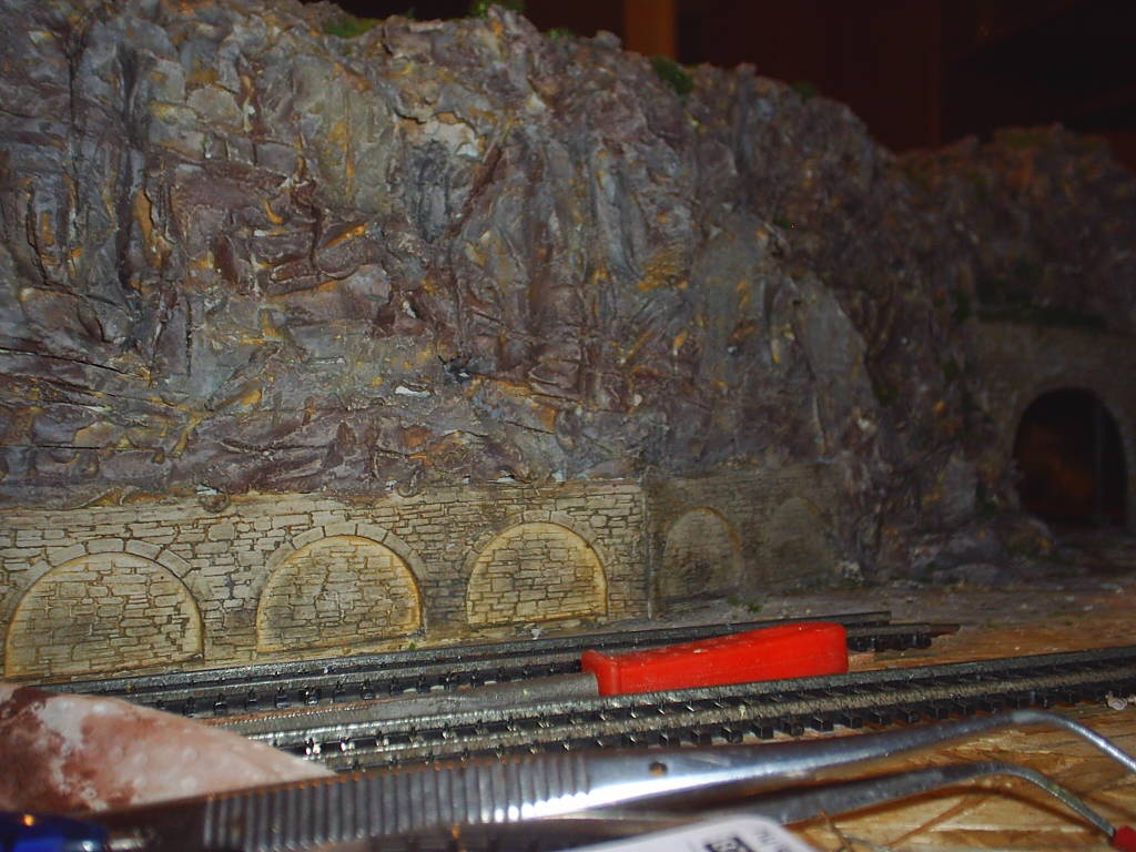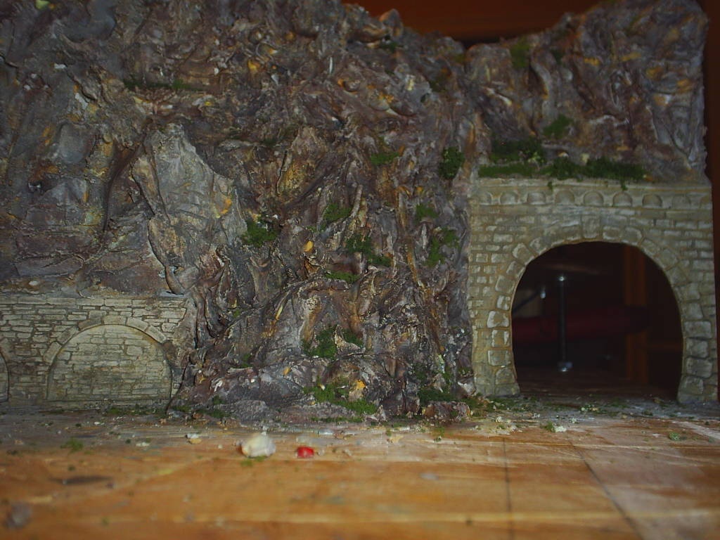 Idei első alkotásom. Ezzel befejeztem a sziklafal építést, most már teljes az asztalkép. A következő feladat a főállomás kiépítése és egy FORDÍTÓKORONG  elkészítése.