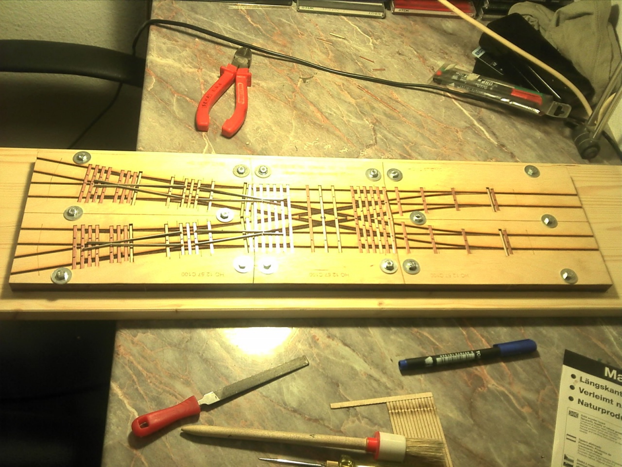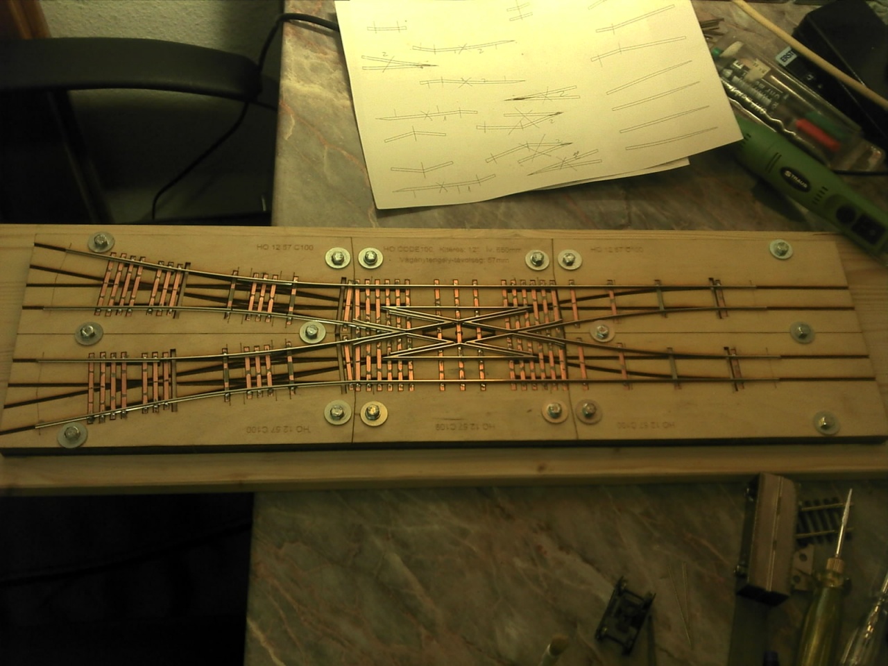 Ma meglepően sokat haladtam! Nagyon jól sikerült a középrész, mindkét forgózsámolyom szépen fut rajta, alig döccen a keresztezésen, és vezetősín nélkül se fut fel a szívre egyik oldalon sem. |