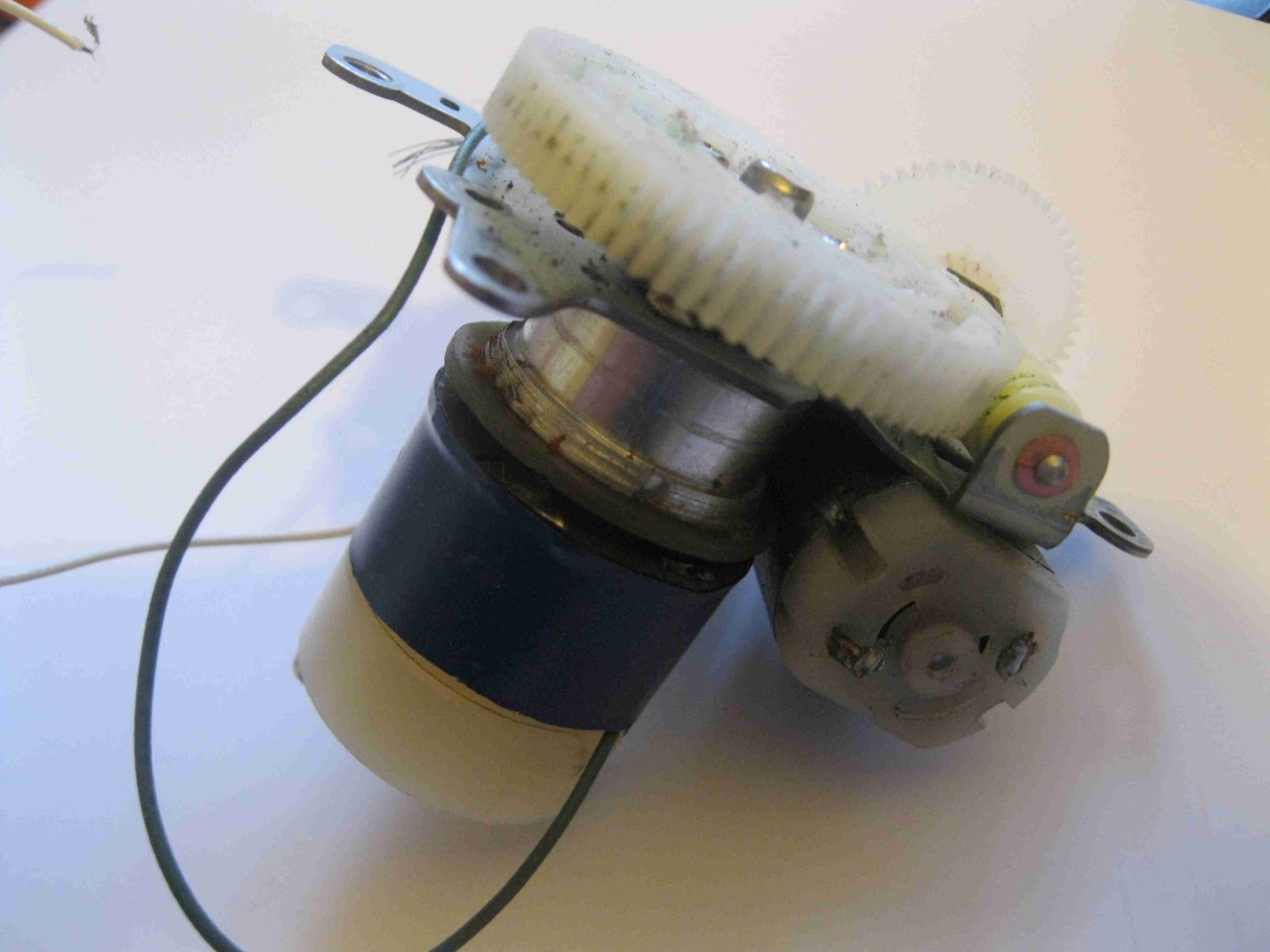 A te képeden is van vagy 40 fogas, aránylag durva fogazatú fogaskerék, amibe egy csiga kap bele. Feltételezem, hogy a videomagnó csapágyában nincs kotyogás, de még mindig lehet a csiga meg a fogaskerék között ill. a csigatengely axiálisan is mozoghat.