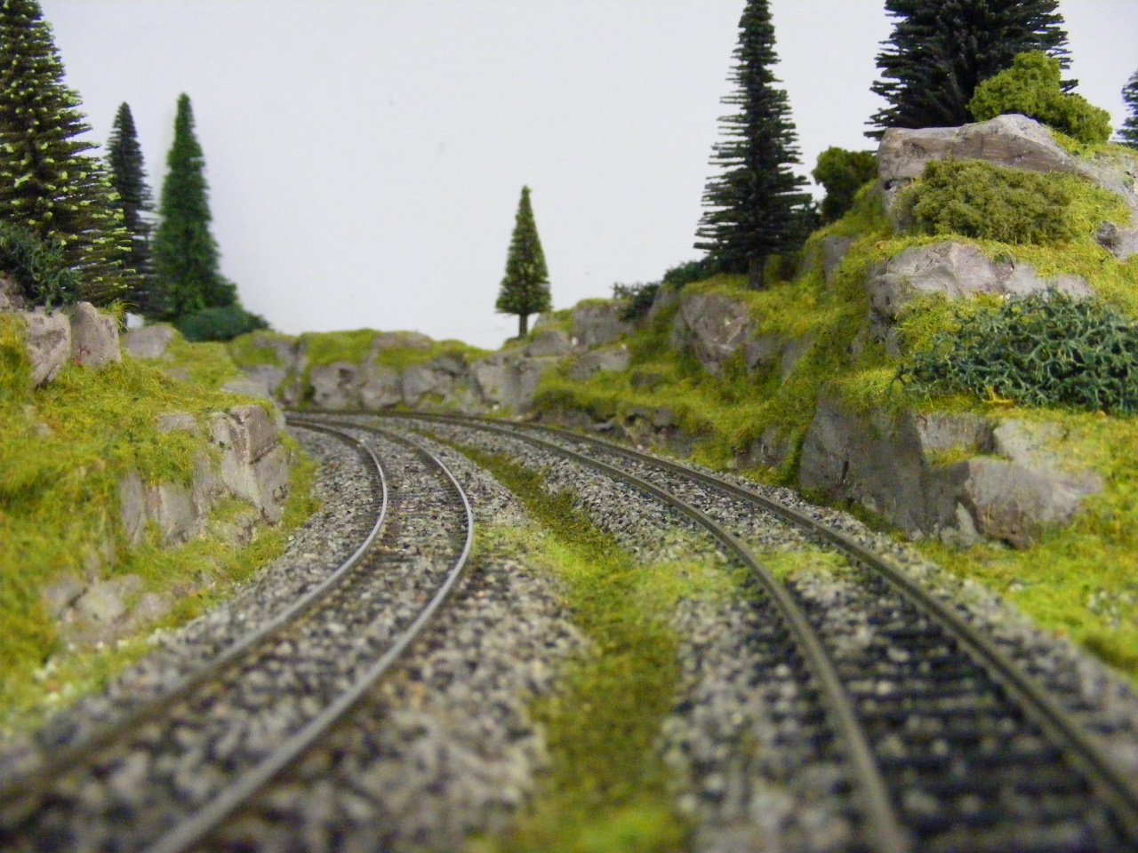 Jobb oldalon a két belső vágányra egy kétállásos fűtőházat szeretnék, bal oldalra az elágazás szárai közé pedig egy váltóállító épületet. A bal oldali vakvágánynak annyi az értelme, hogy szeretnék csinálni egy négyes fonott íves kitérőt!  |