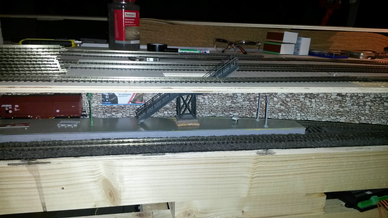 terveim szerint 2 vágány haladna párhuzamosan az egész asztalon, így az állomáson is.