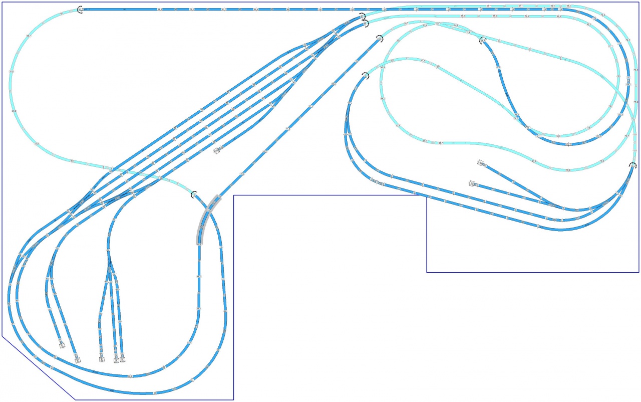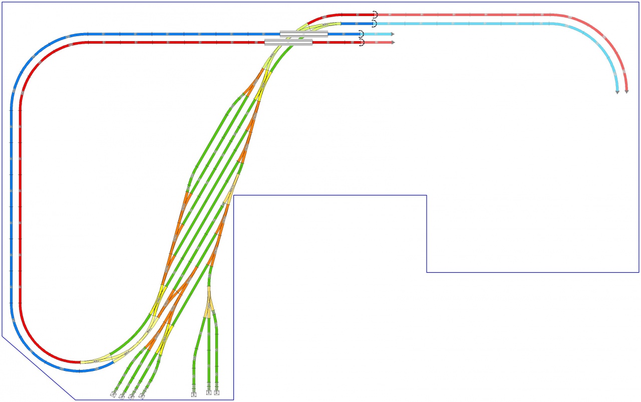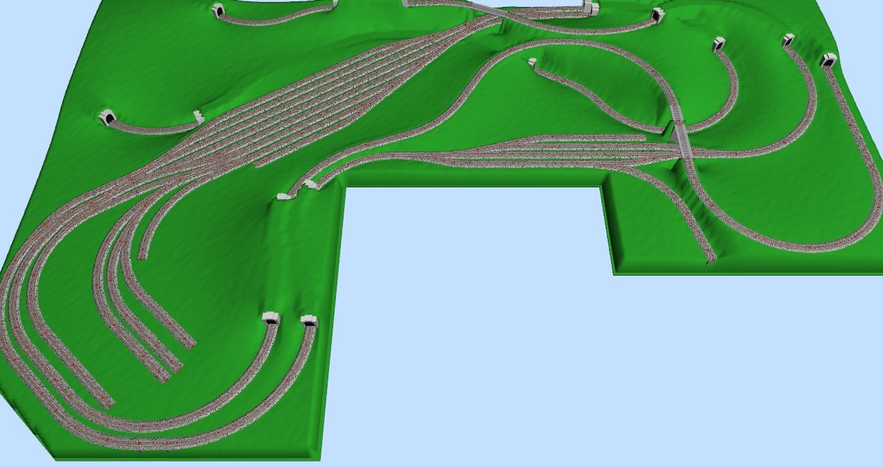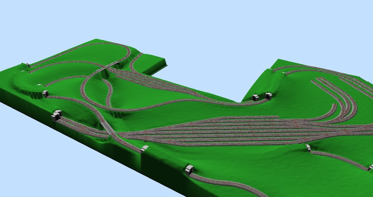 Kicsit hosszabbra vettem a látható részeket a nyíltvonalon. Nem ismerem a terepet, hogy mennyire fér bele, de hátha többet látni így a vonatokból. Meg talán a jobb felső sarokba egy iparvágány elférne és jó kis feladatokat adhatna a kiszolgálása  |
