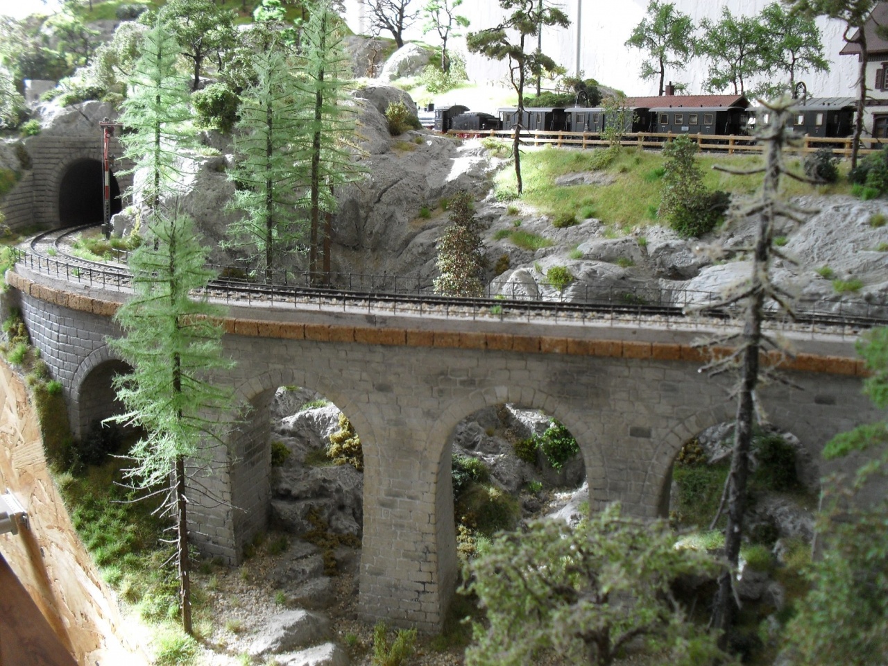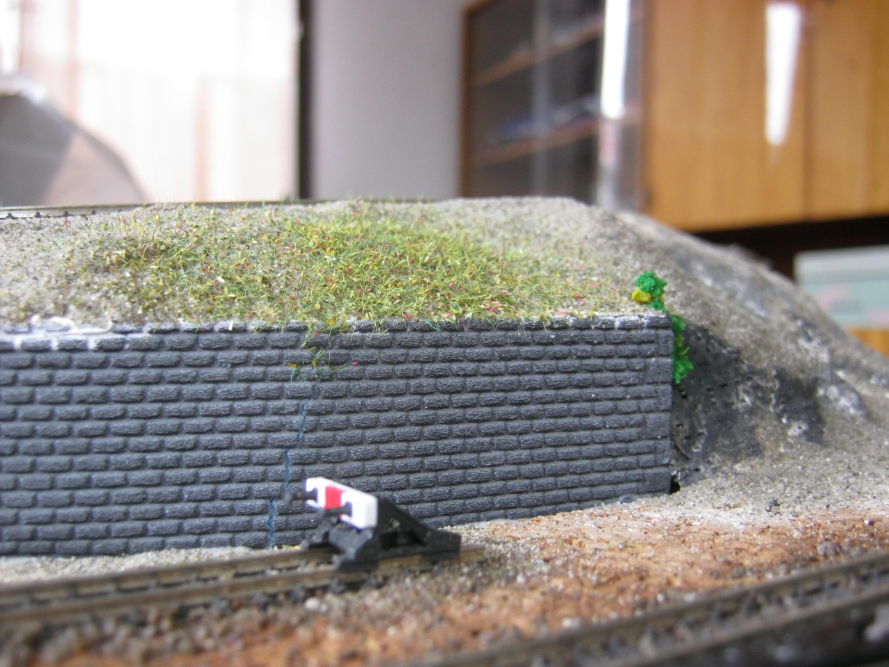 Kisfa csirkehálóból készítette a viadukt meg a fordítókorong korlátját. Sajnos jobb képet nem találtam, de láttam élőben is, nagyon jól néz ki, ráadásul forrasztgatni sem kell, csak méretre vágni!  |