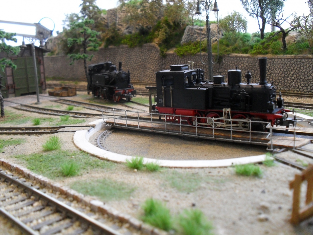 Látványosabb egy mozdonytelep 2-3 állásu egyenes fütöházzal, meg egyébb berendezésekkel. Valahol állhat ( háttérben) egy korong is 2-3 sinnel csakis a forditásra. |