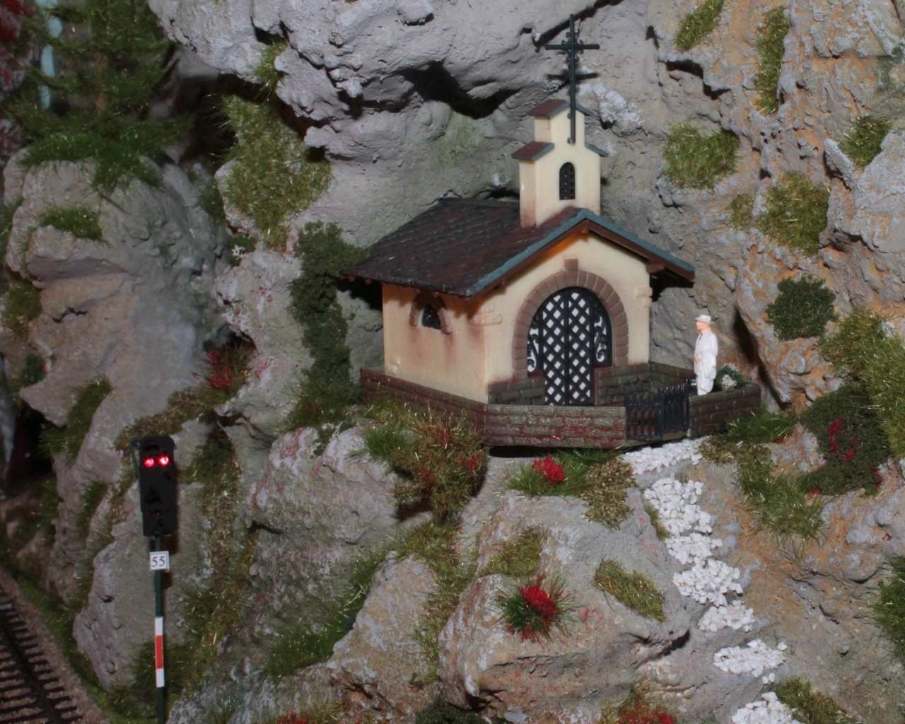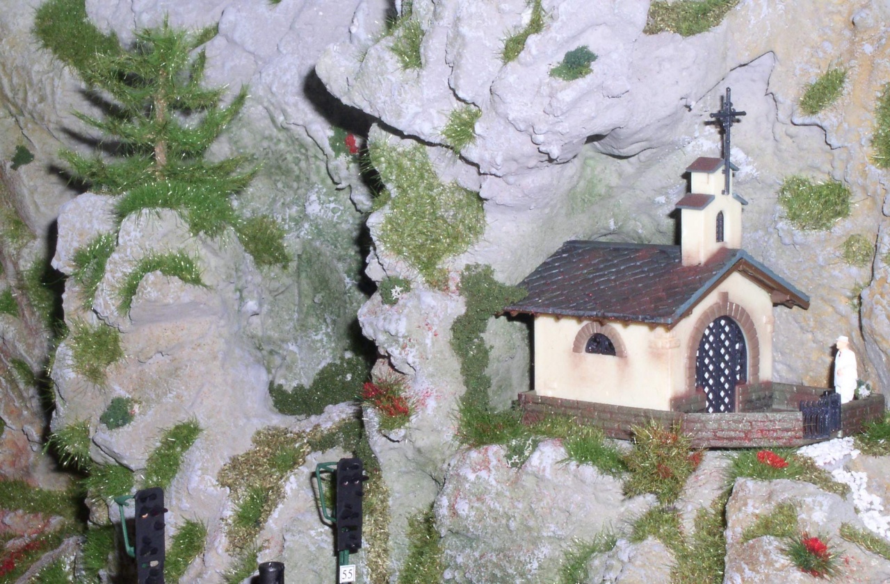 Egész szépen alakul! Ha elfogadsz egy "tanácsot" (innen, a pálya széléről): A fűpapírt ragaszd le, mert a széle felpöndörödik, és eléggé illúzió-romboló hatású. Amúgy kimondottan tetszetős. Főleg a fák "tuningja" és a kápolna.  |