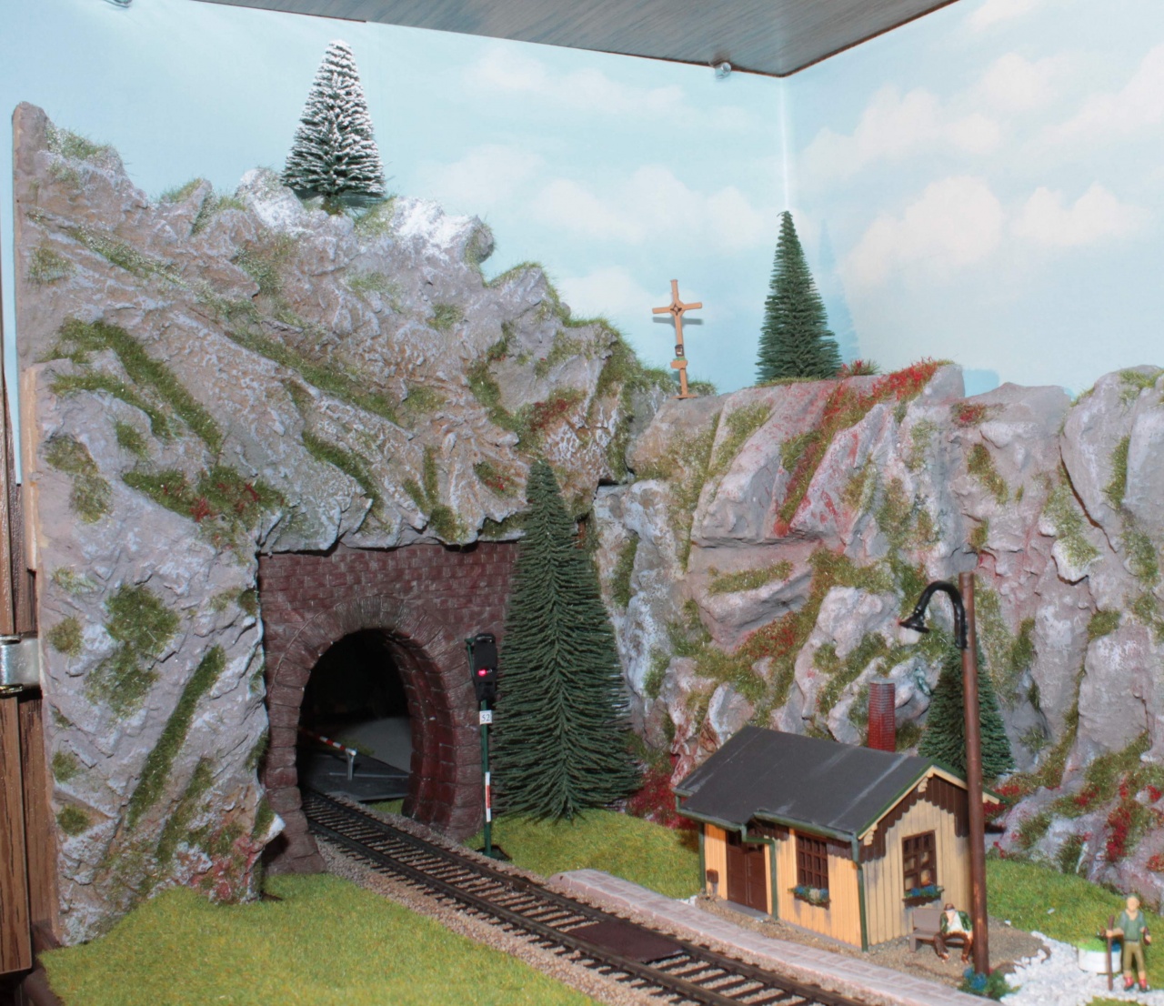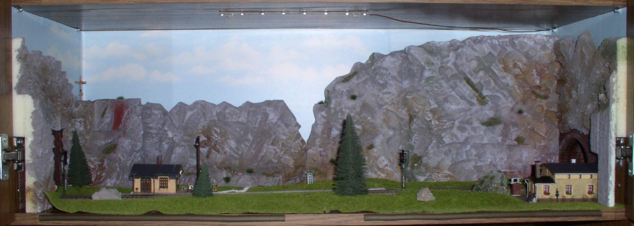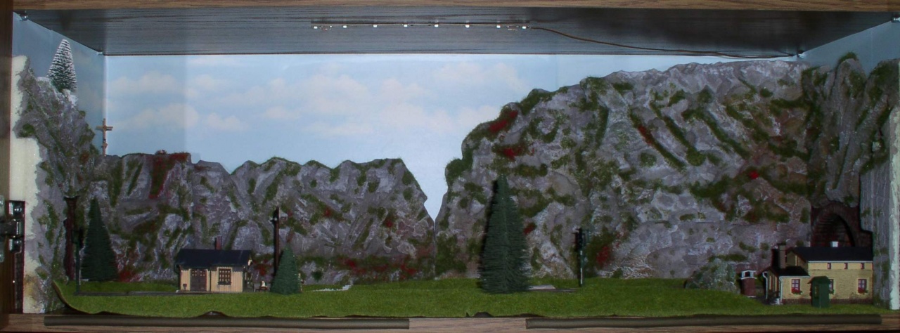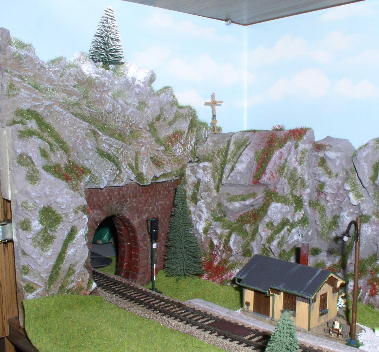 -Alagút bejárata fülé szúnyoghálóból lesz majd sziklavédő. Nekem a túlzott egyenessége nem tetszik a szikláknak ott, erre lesz majd a háló, ami megtöri ezt az egyenességet - amikor kifaragtam a lapokat és festetlenül odapróbáltam, nem tűnt fel...