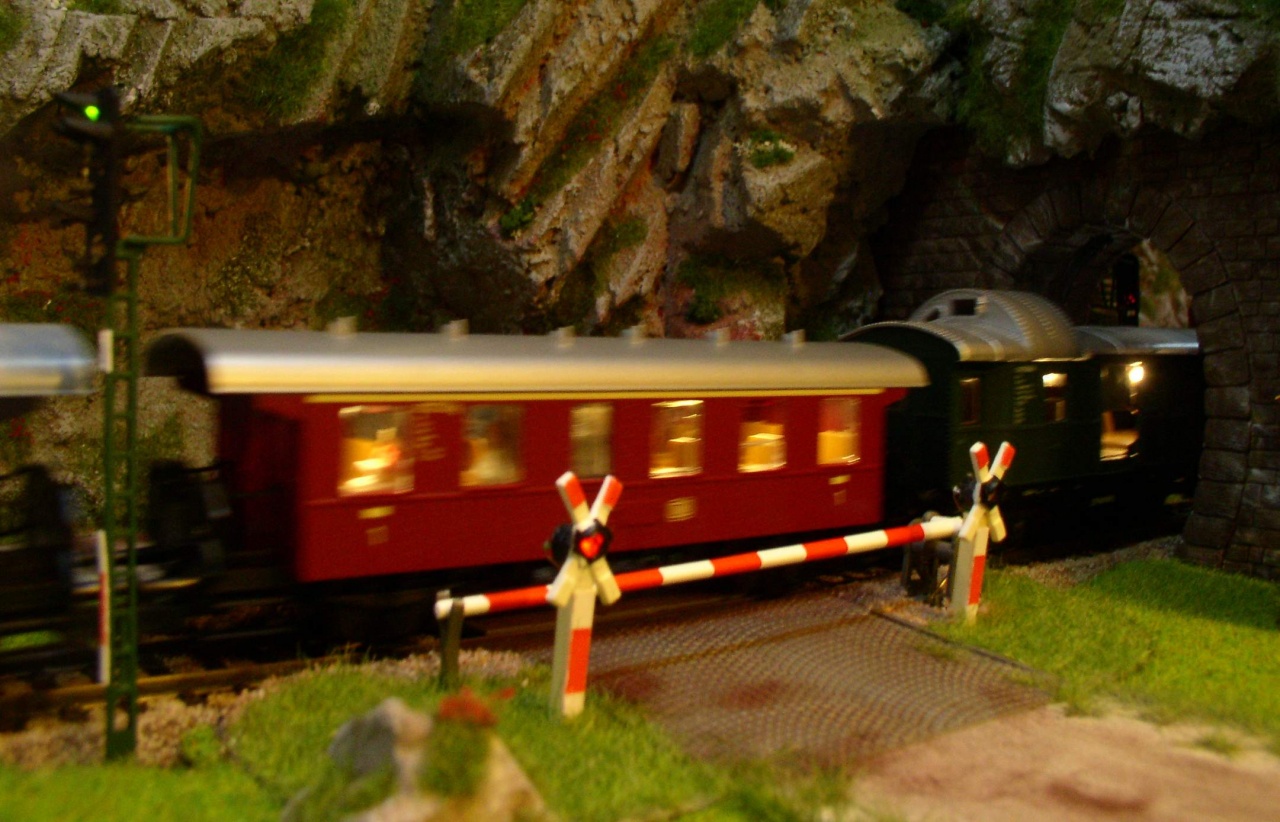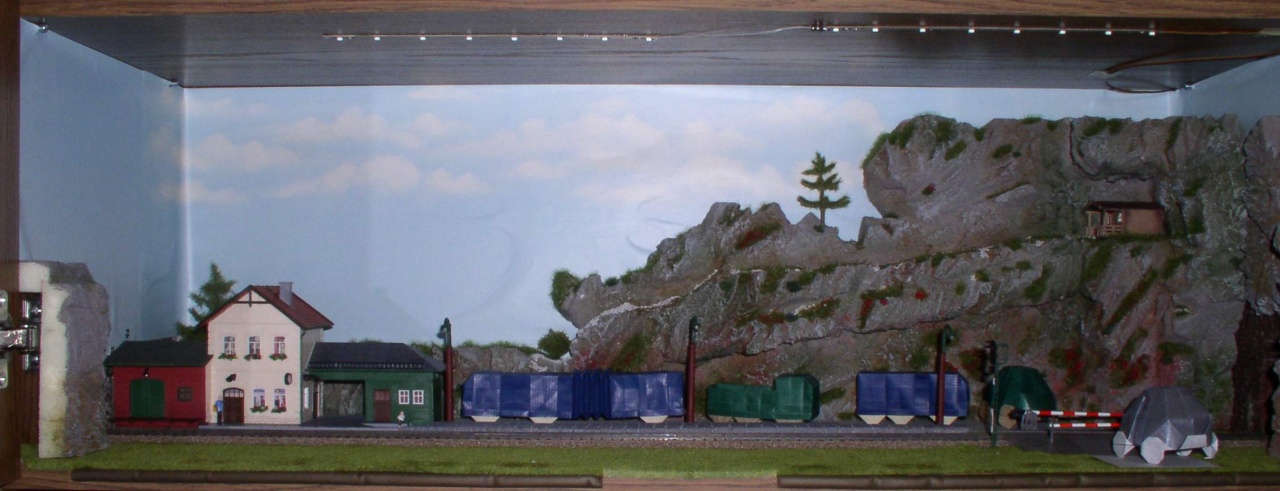 Elkészült a "vasúti" átjáró a vitrinvasúton. Igyekeztem jóra készíteni.