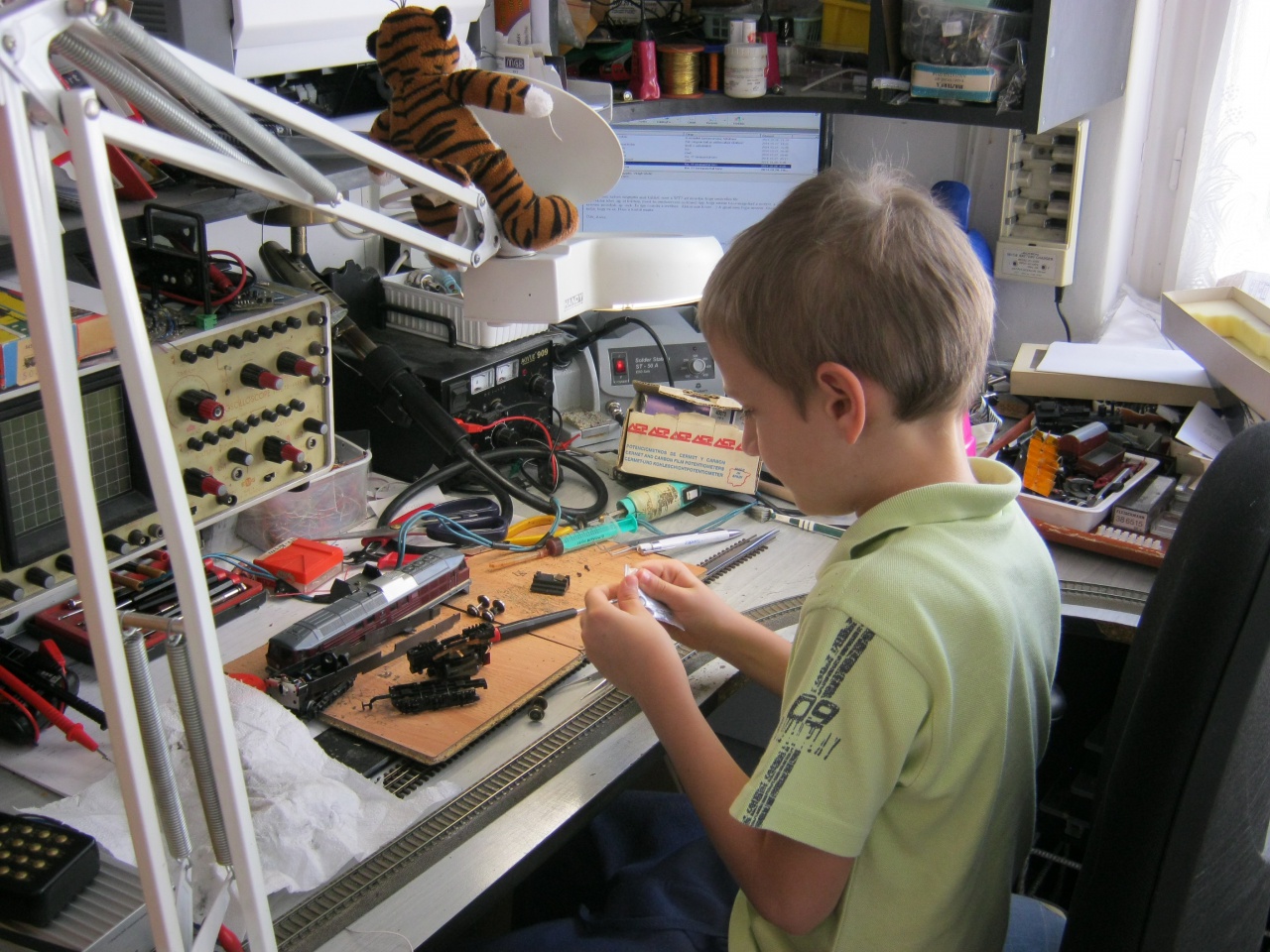 Az elektronikai cuccaid fejlesztése sem lesz egyszerü, mert a modellvasut nemcsak zárlatokat okoz, de nagyon zavar is. A mühelyben nincs zavar, minden megy a pályán meg rendszerint semmi nem müködik. |