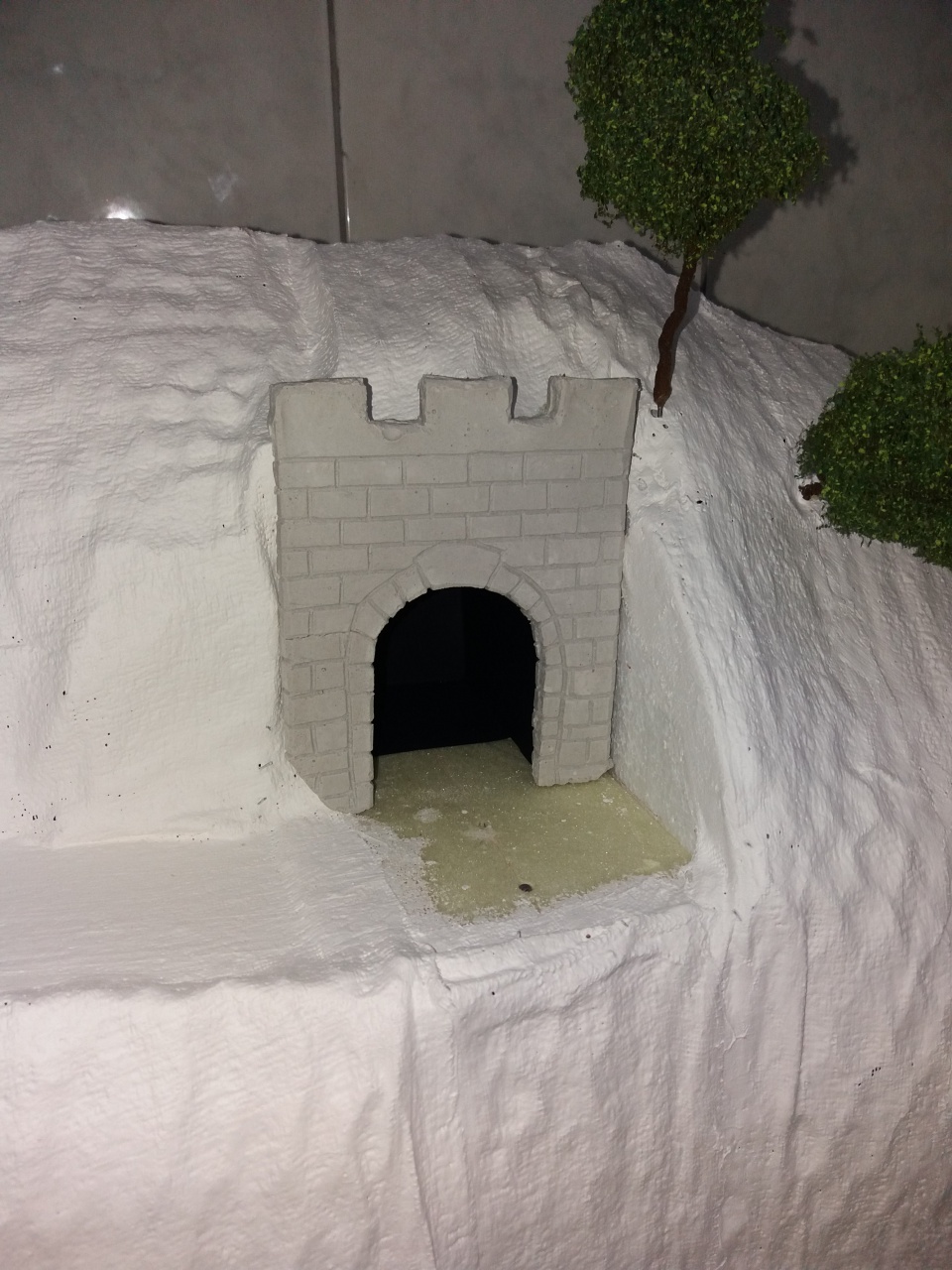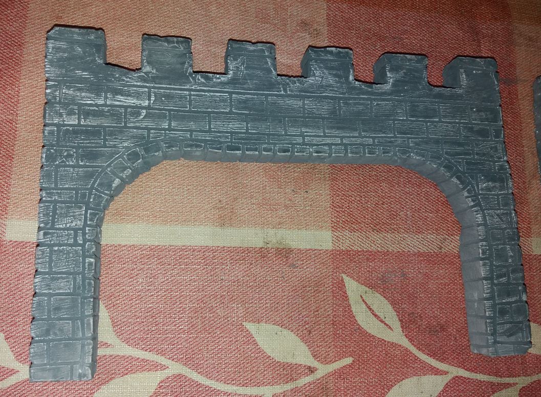 Festés után az alagútkapuk. Festéknek fekete szinezőpaszta és fehér tempera elegyét használtam. Egész jól keverhetőek!