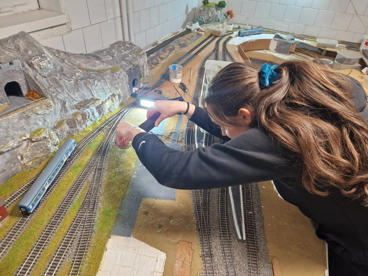 Nem régi eset a műhelyben, lefordítja a fentieket modellvasútra. Előkerült a nagyszülők által évtizedekkel ezelőtt vásárolt BTTB gyűjtemény. Maradt benne egy aranyos, és szépen megjavítható V36-os dízel, és szép kis teherkocsik, meg kaptam pár régi vágánymezőt. Mondtam, hogy lehet a régi sínekkel is dolgozni, csak nagyon-nagyon-nagyon macerás, és nem garantált a tartós üzembiztonság. Meghallgatták, megnézték, hogy mit lehet csinálni, majd pár nap múlva jött a telefon, hogy inkább vennének új síneket. Mert inkább rááldozzák a pénzt, de ne akadozzon a kisvonat, mert úgy nem öröm a játék. A cél meg az, hogy örömöt adjon a gyerekeknek, és hátha hobbivá válik. |