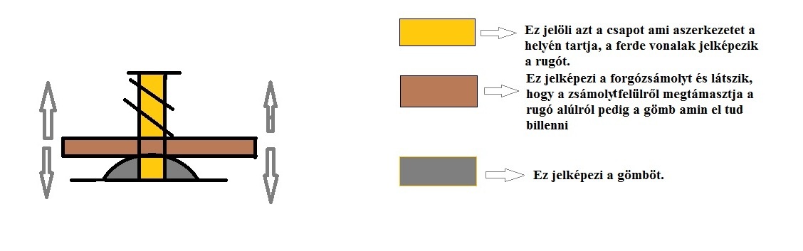 Ügyes megoldás. Gondolom a csap átmérőjénél kicsit bővebb furat van, hogy tudjon billenni. |