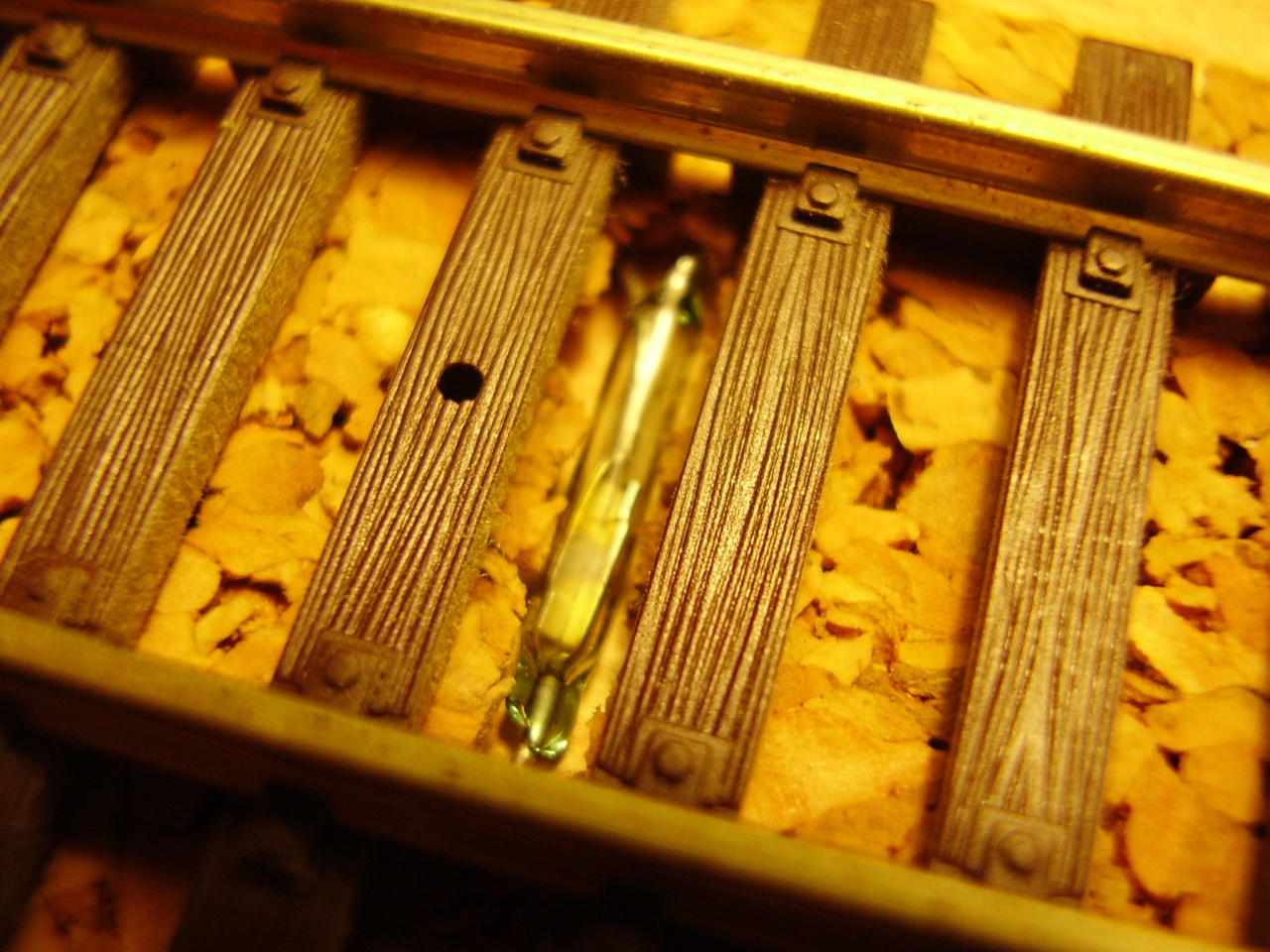 Ha za emlékezetem nem csal, akkor valaha régen, talán a PIKO gyártott olyan TT vágányokat, amelyeknél a műanyag keresztaljak közül egybe-egybe be volt építve pici REED cső. (Hogy aztán lehet-e ilyet kapni még, nem tudom, de egy elég kicsi csövecske kis ügyességgel elrejthető a sínszálak között, szerintem.) |
