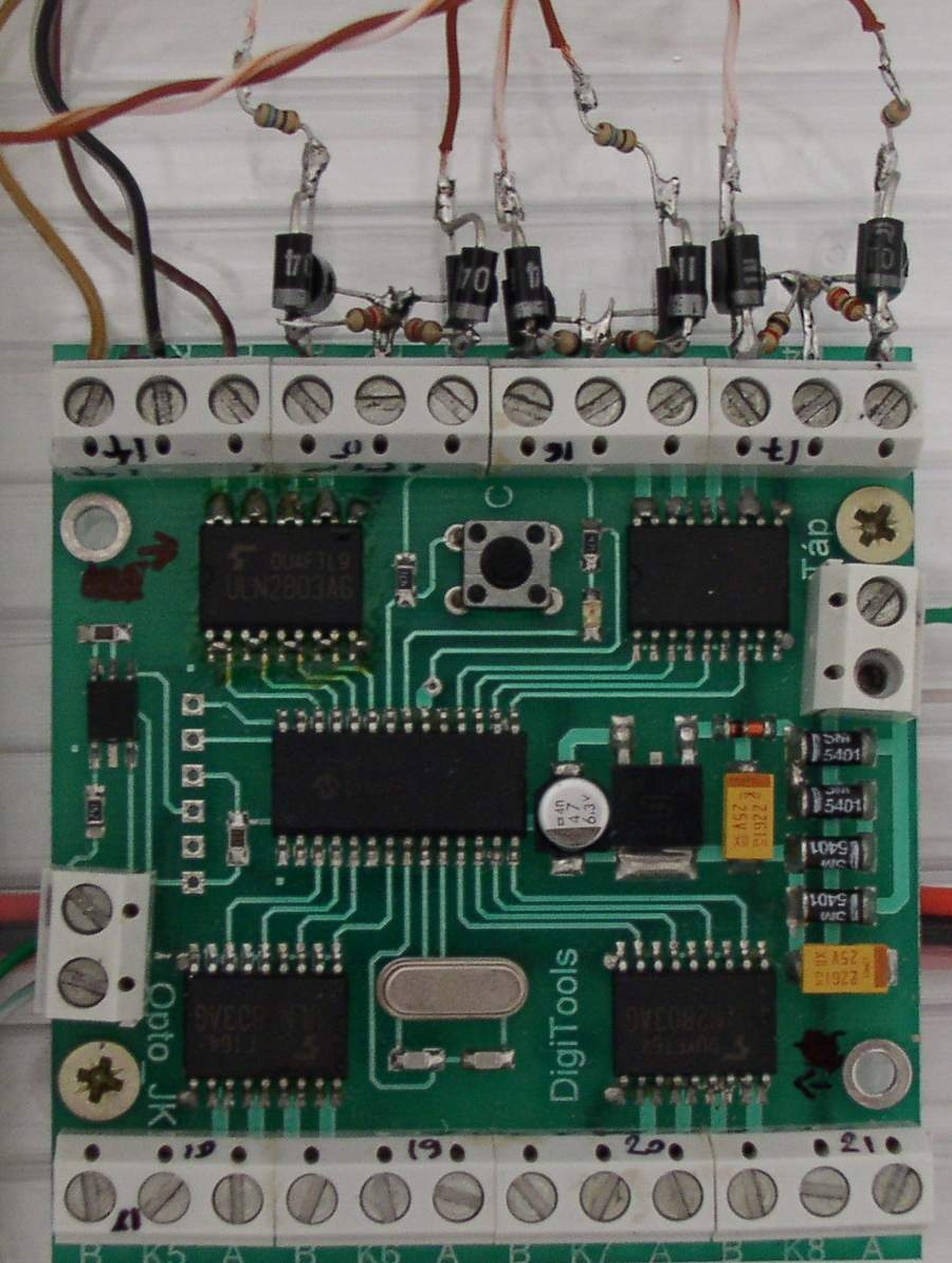 Így már csak irányítani kell a hangokat. Erre azt találtam ki, hogy egy eszközdekóderrel reléket kapcsolgatok, a terepasztalon pedig több helyen el lehet tenni a hangszórókat (állomás, alagút, híd, házikó, stb.). A program lejátssza a zenét és csak ott szólal meg hang amelyik relét éppen meghúzta az eszközdekóder kimenete - ezt is a program irányítja ugye.