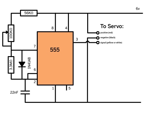 Kerestem a neten egy egyszerű 555-össel megvalósított servo vezérlő áramkört (belinkeltem)