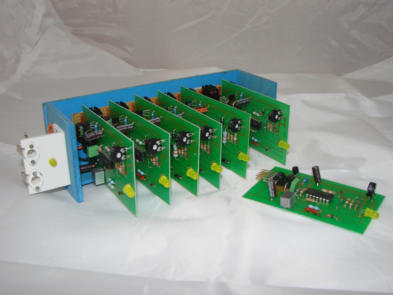 A harmadik eljárás, hogy fénykapukkal figyelik a szakaszok állapotát. Ennél sem kell a jármüveken és a vágányzaton semmit változtatni. Ma már céljainkra tökéletes és olcso lézer és LED fényforrások kaphatok, sajnos a telepités föleg ivekben messze nem egyszerü. Apro tükrök tucatjai kellenek ahhoz, hogy a szakaszokon levö jármü megszakitsa a fényt. A rendszer eléggé zavarvédett és megfelel a modellvasuti üzemnek. Kaphatóak infravörös, stb. "lathatatlan" fényü fényforrások is, igy a láthato pályán is "láthatatlanul" telepithetö. A lézerrel (elég a leggyengébb is) kicsit vigyázni kell, mert jobb a szemünket védeni az erös fénytöl. Föleg a láthatatlan fényü lézerek tudnak veszélyesek lenni... Nagyon jol használhato a rendszer a fedett, egyenes vágányokbol állo pályaudvarokon. Itt akÁr egyetlen fényforrás trükkökkel sok vágányt is le tud fedni, igy minden vágányhoz csak egy-egy figyelö fotodioda kell. |