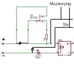 Ha ezt a kapcsolást továbbgondolnám, lehet a segédtápot kihagynám. A mozdony tápegységet kötném be helyette egy egy pl 10K-on keresztül. A mozdony erről már nem megy, az elektronika még igen. ha a mozdony arra jár, senkit nem fog zavarni a plusz 5 Kohm terhelés.Előnye nem kell külön segédtáp, bármennyi ilyen érzékelő párhuzamosan köthető. |