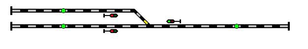 3. vágány, szintén dupla sárga, vagy zöld, ha a nem színezett váltó nem a színezettek felé áll, valamint, ha az egy másik vonal vágánya, és nem csak egy csonkában vége van egy ütközőbakkal.