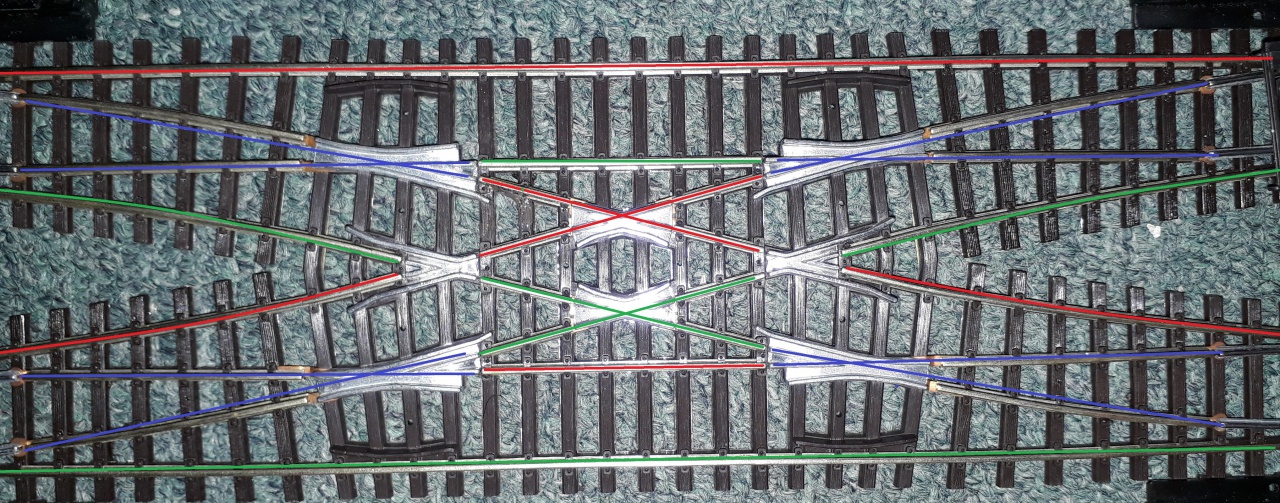 Nekem ugy vannak a váltok vezérelve, hogy vagy minden válto egyenesben van vagy mind a 4 kitérésben ( kereszt vágányutak), és ha jol emlékszem azok a háromszögek egy kontaktuson keresztül vannak megfelelö polaritásu árammal ellátva.