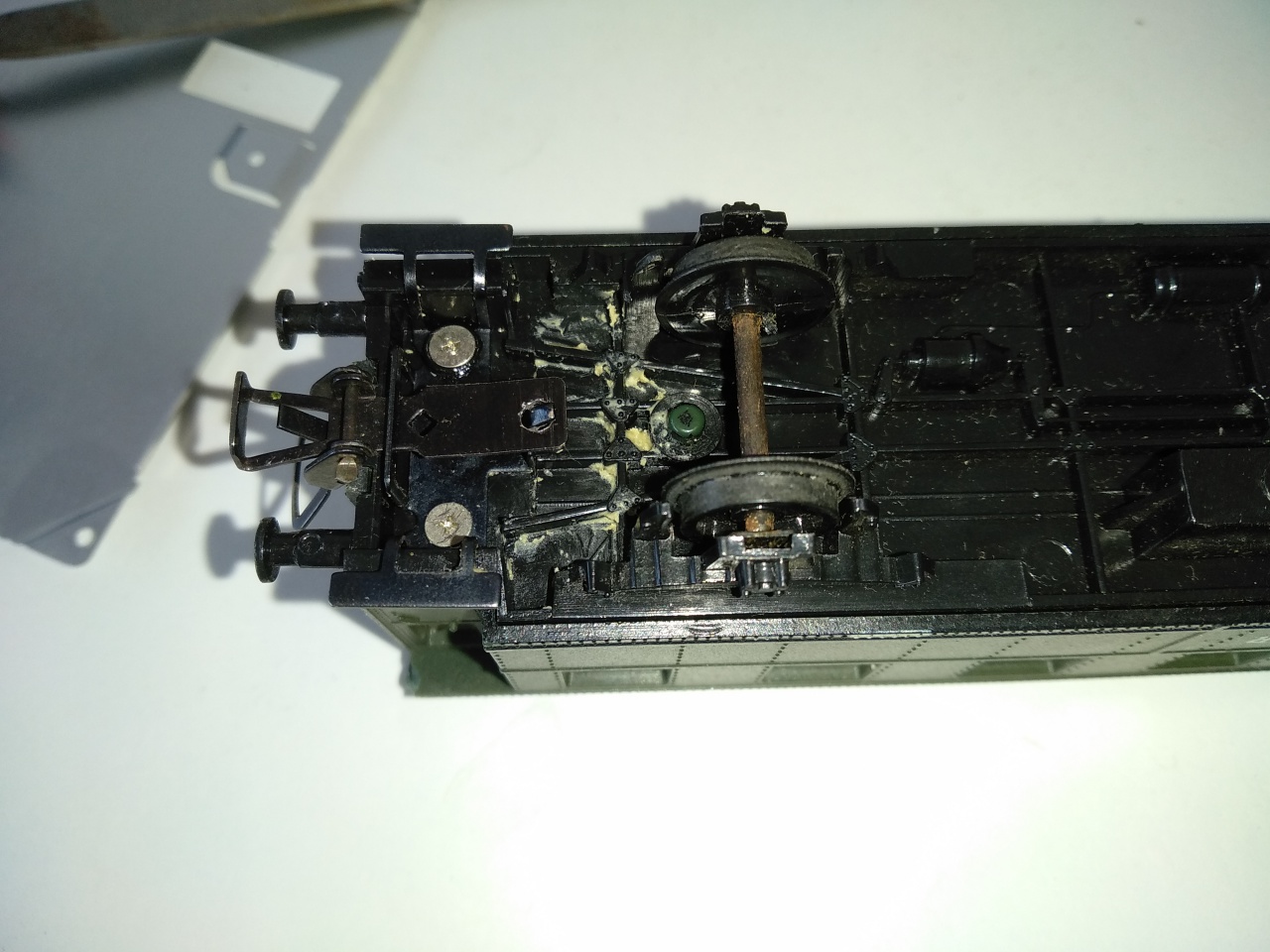 Itt ugye az elszigetelt kerekek tengelycsonkjai az áramszedő lemezek "csapágyaiban" futnak. Így veszi fel a delejt. A probléma az, hogy a kerekek tengelyei elkezdtek rettenetesen sírni. Szétszedtem, megtörölgettem, megfordítottam, átcseréltem a kererekeket, de újra és újra előjön a hangos sírás.