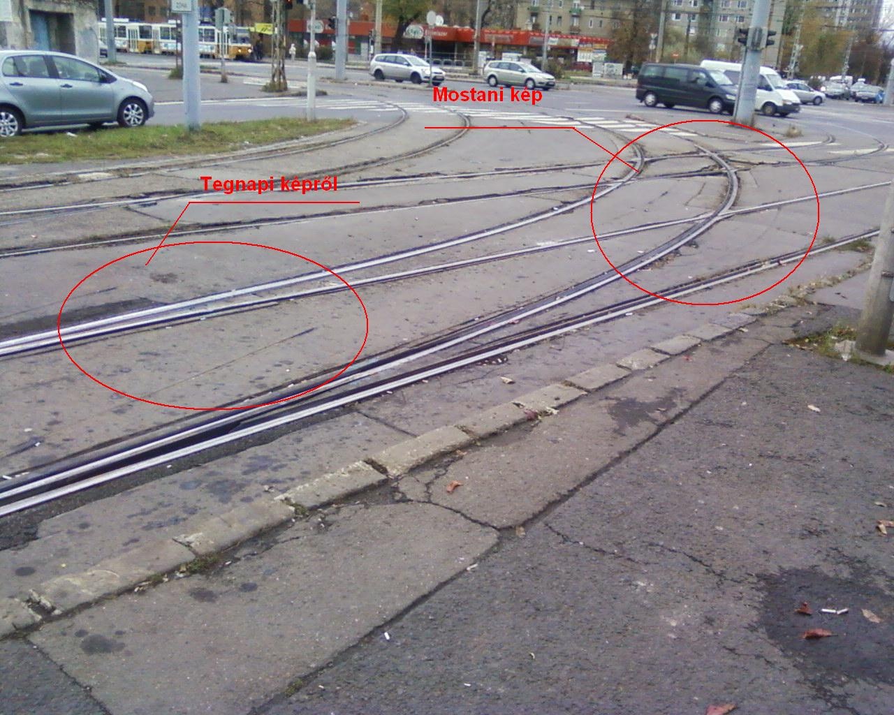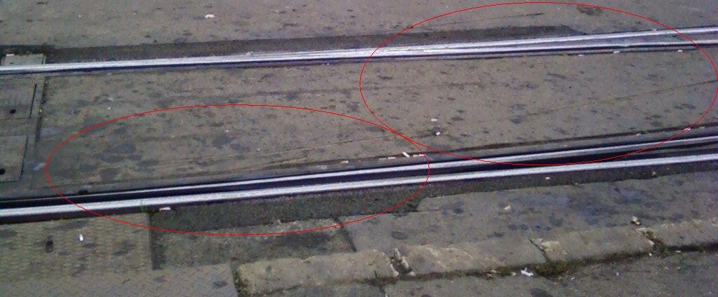 Már elég régóta járok a 37-es villamossal a Hidegkuti Stadiontól Kőbánya-felsőig. A stadionnál lévő megállóban készítettem az alábbi képet. Gyanúm szerint a rajta látható vonalak (a másik képen kiemeltem) egy (illetve több!) siklás nyomai. Van erről valakinek infója? |