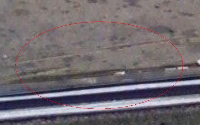 Kb. 0:57-0:58 körül látni a kerekek által aszfaltba vájt nyomokat. Ezek kísértetiesen hasonlítanak az általam fotózott nyomokra.